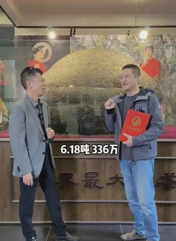 李亞鵬曾在直播間開心宣布自己以友情價350萬元買下一個6噸多重的沱茶,年份長品質高。(影片截圖)