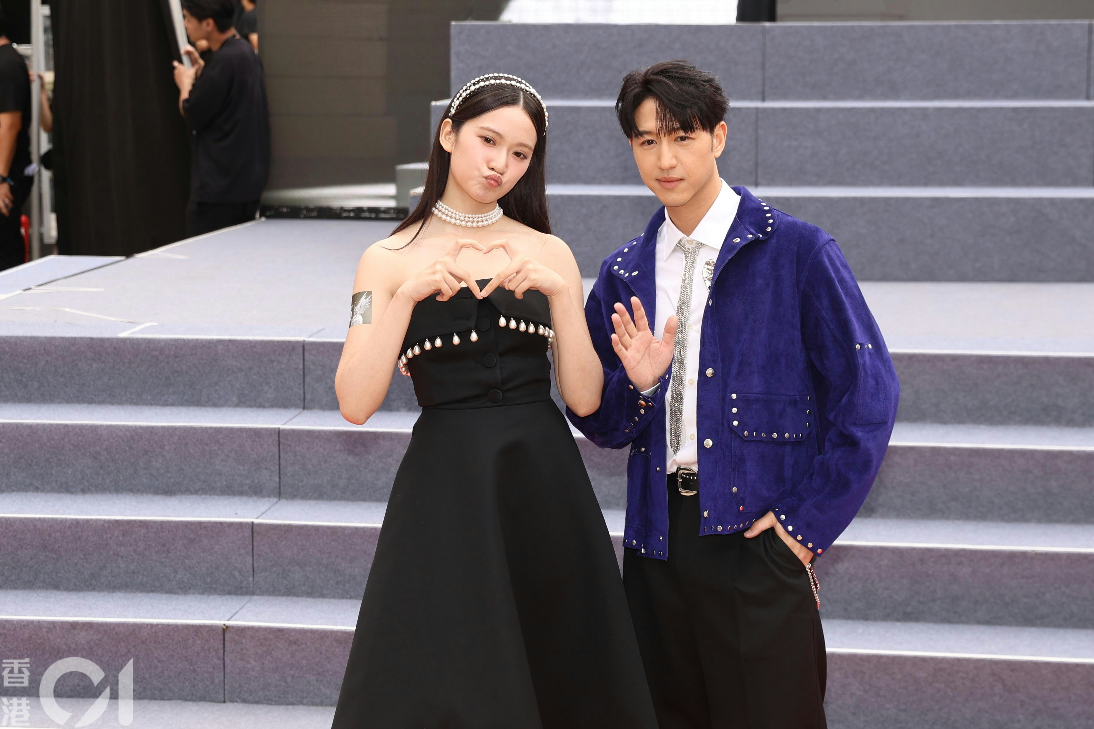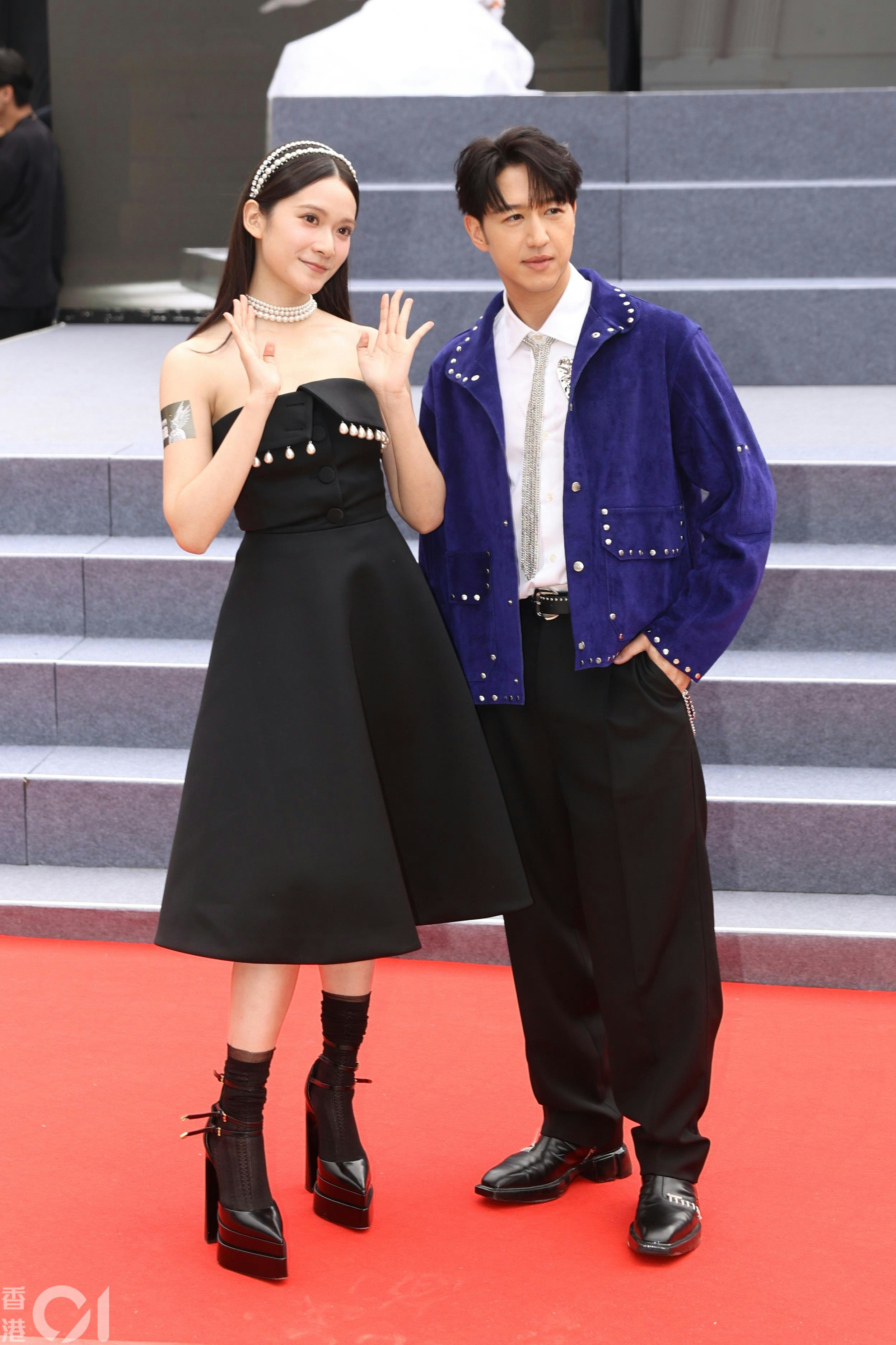 謝安琪在記招上蹺住林家謙手臂出場,她解釋因為一個人行紅地氈會害羞。(陳順禎攝)