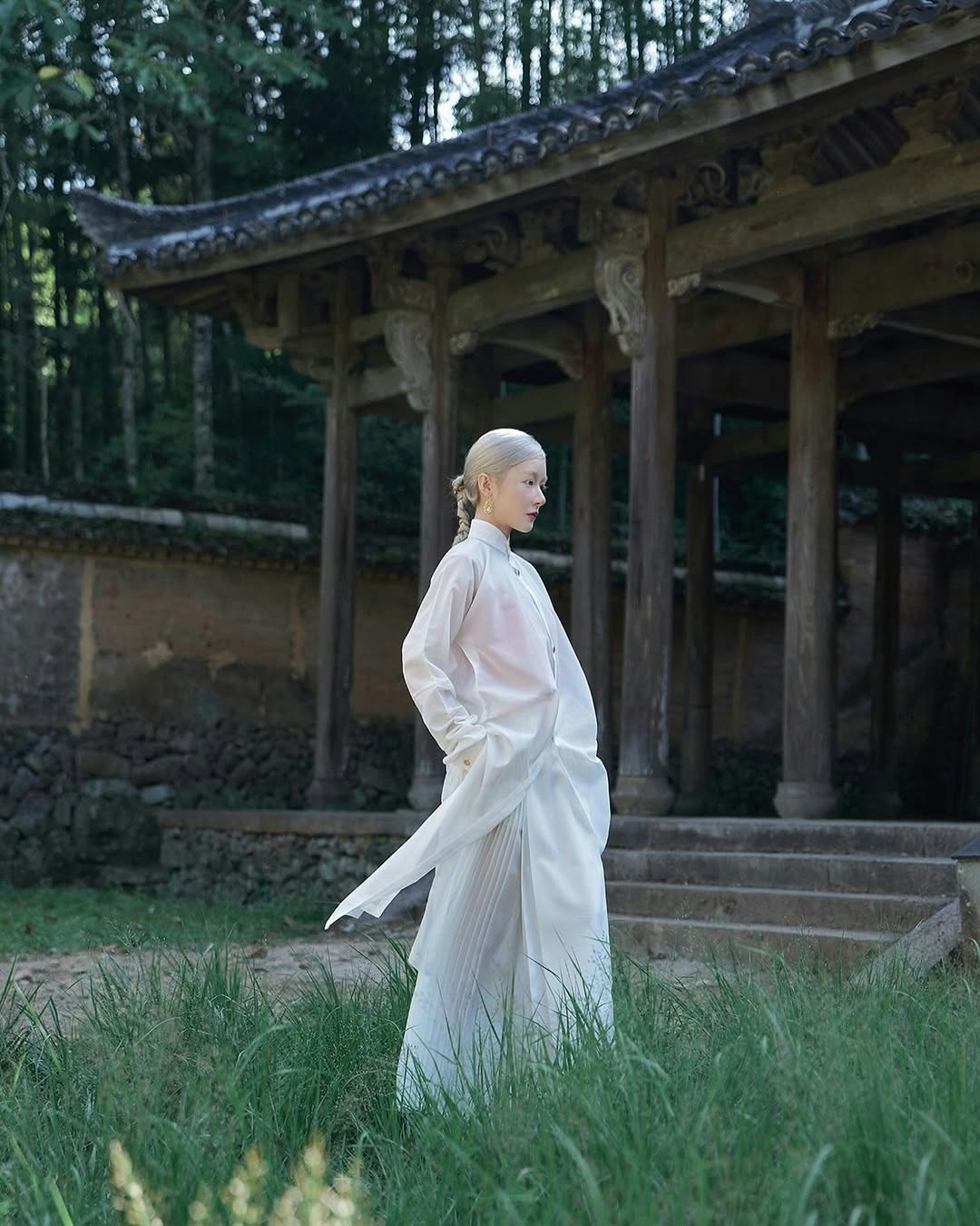 徐嬌將頭髮與眉毛均漂染成銀白色,妝容亦化得慘白。(徐嬌IG圖片)