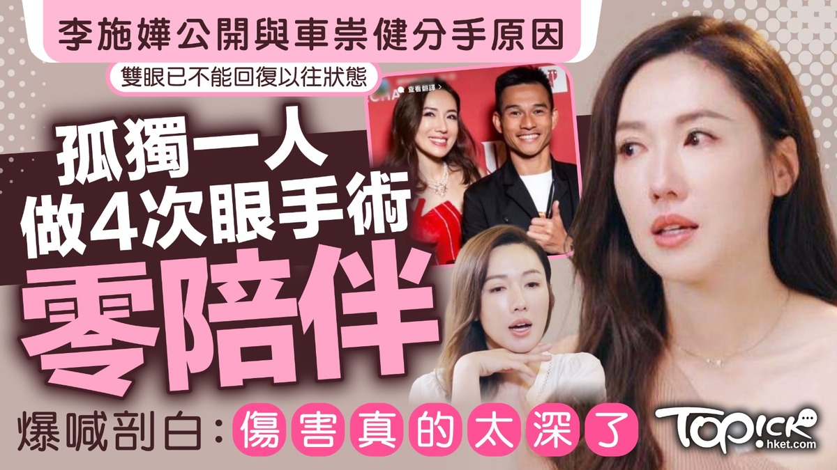 ▲李施嬅公開與車崇健分手原因 孤獨一人做4次眼手術零陪伴 爆喊剖白:傷害真的太深了