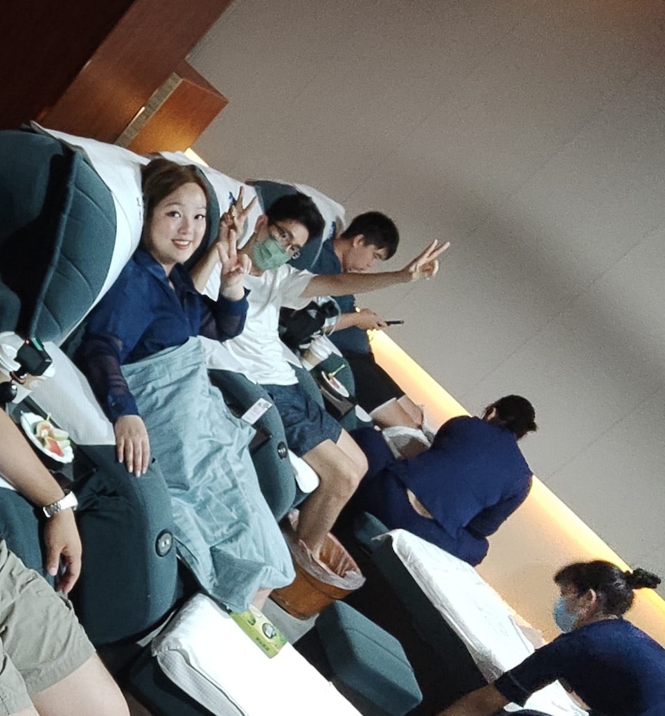 妹頭喺疫情期間創業投資於足浴店承受壓力。(《臥底旅行團5.0》)