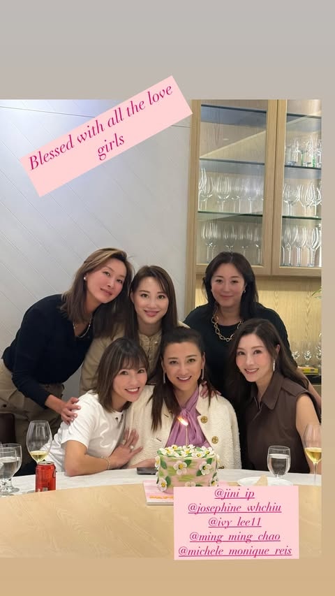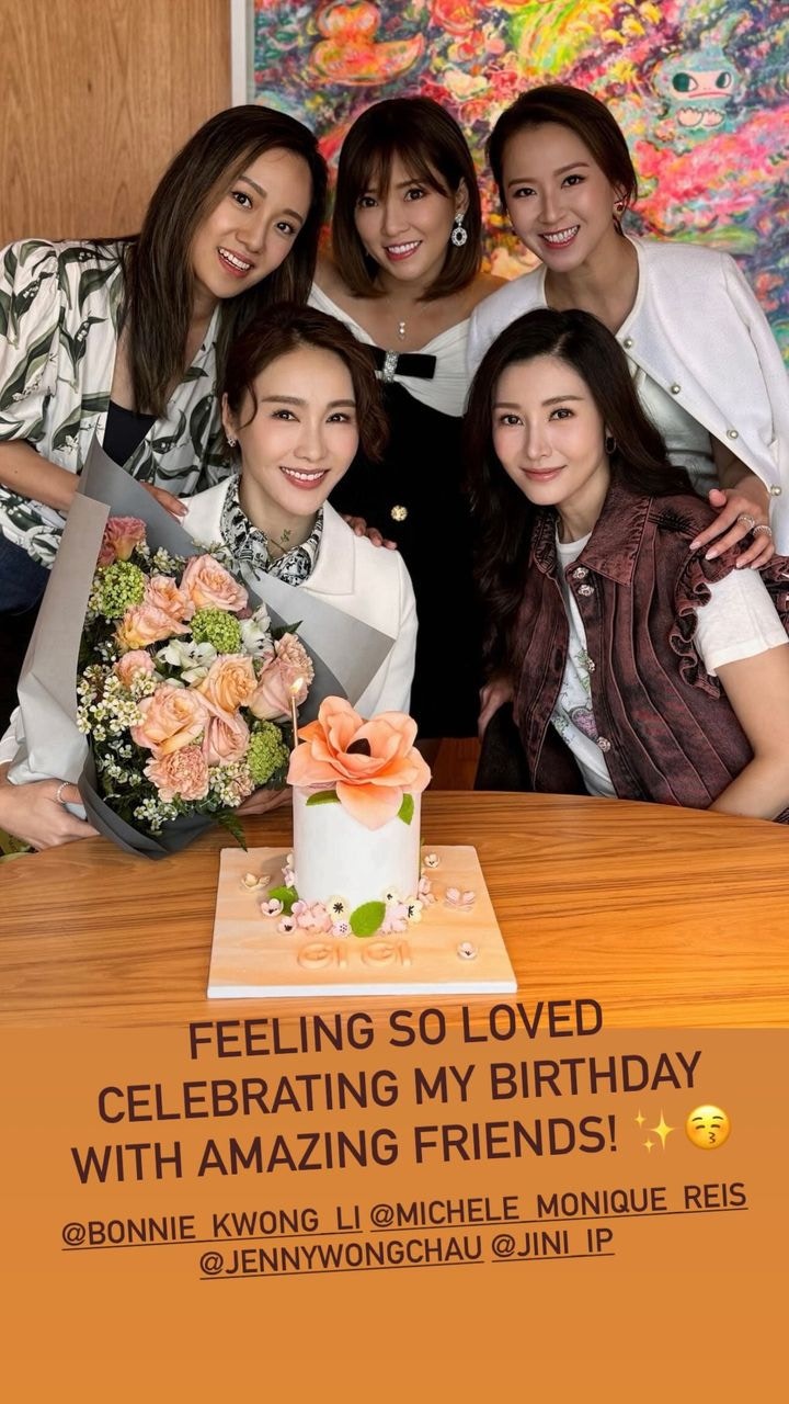 黎姿(Gigi)自與富商馬廷強結婚後升格豪門闊太,更躋身上流貴婦圈,不時與一班名媛好友聚會。10月1日黎姿迎來54歲生日,她在社交平台分享喜悅,除了獲老公同囡囡送上禮物之外,亦有曬出多張與家人的合照。雖然黎姿的生日正日已過,但日前她又獲一班名媛好友為她慶生,她寫道:「生日月吃生日飯,還有漂亮的生日蛋糕🎂在這個特別的日子,閨蜜們的陪伴拉滿了幸福感,感謝安排💕非常驚喜」