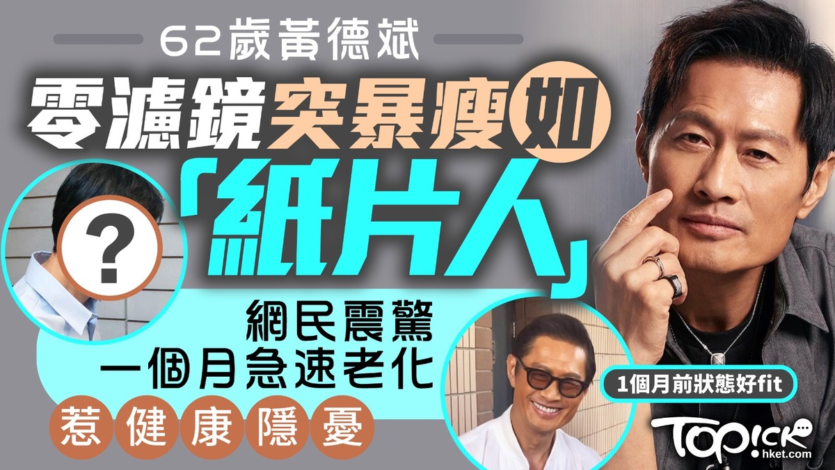 然而日前在上海演出舞台劇《唔講得》,後台與粉絲互動的最新影片中,黃德斌穿著藍色襯衫配杏色闊褲,戴上黃色太陽眼鏡,消瘦面容在鴨嘴帽下顯然易見,特別是低頭簽名時,兩頰凹陷的情況格外明顯。從側面看上去,身形比起以前單薄,衣服略顯寬身,手筋暴露,手臂肌肉線條消失。低頭時,頭頂白髮明顯增多。