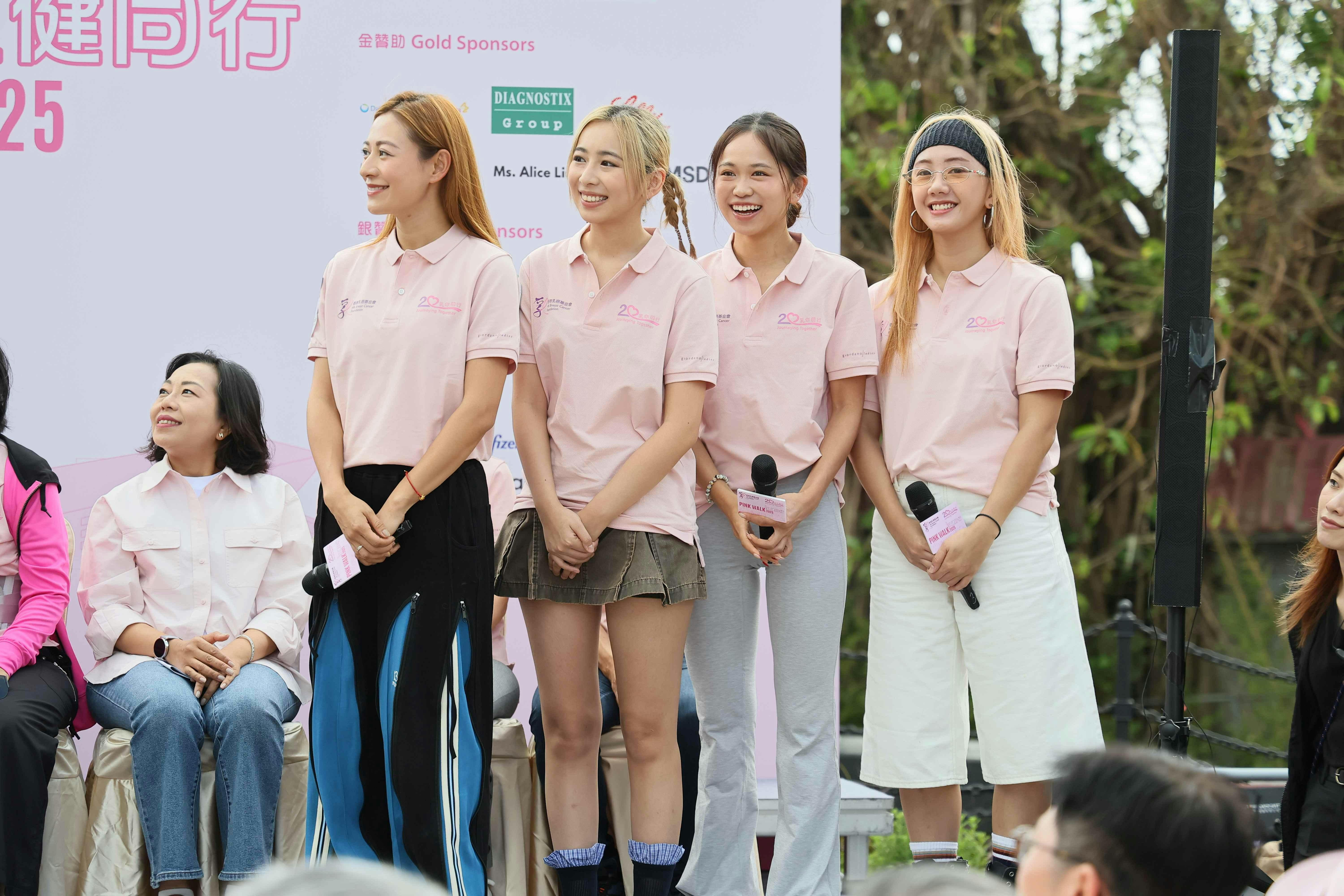 家燕姐、廖碧兒、朱千雪分別以基金會大使身份作出呼籲,家燕姐與廖碧兒多年來一直支持「乳健同行」,原因既可以做運動,又可以做善事,幫助乳癌社群,並提醒大家在活動過後,要繼續支持基金會的工作。而連續第二年現身支持「乳健同行2025」的朱千雪表示,見到近二千粉紅健兒共聚山頂,場面好震撼,大家都抱著共同信念支持乳癌患者及推廣乳健資訊,很令人感動。