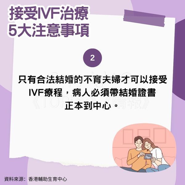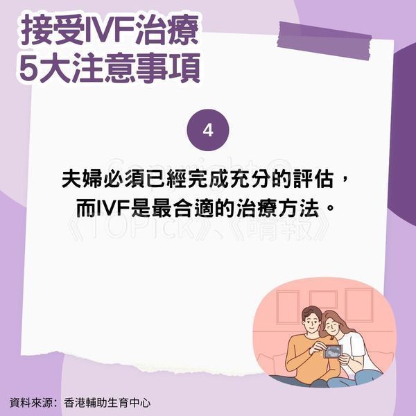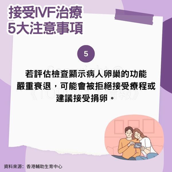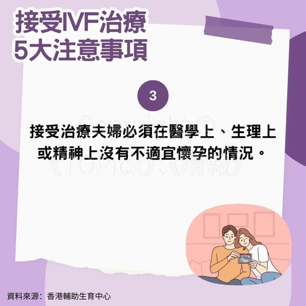 據香港試管嬰兒中心資料,接受IVF治療的夫婦有5大注意事項: