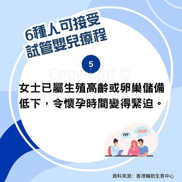 根據香港輔助生育中心資料,體外受精及胚胎移植(IVF),俗稱試管嬰兒,是一種有效治療不孕症的方法。IVF療程涉及從女士的卵巢中抽取卵子,讓精子和卵子在體外受精結合,培養成胚胎後再移植回女士的子宮內。