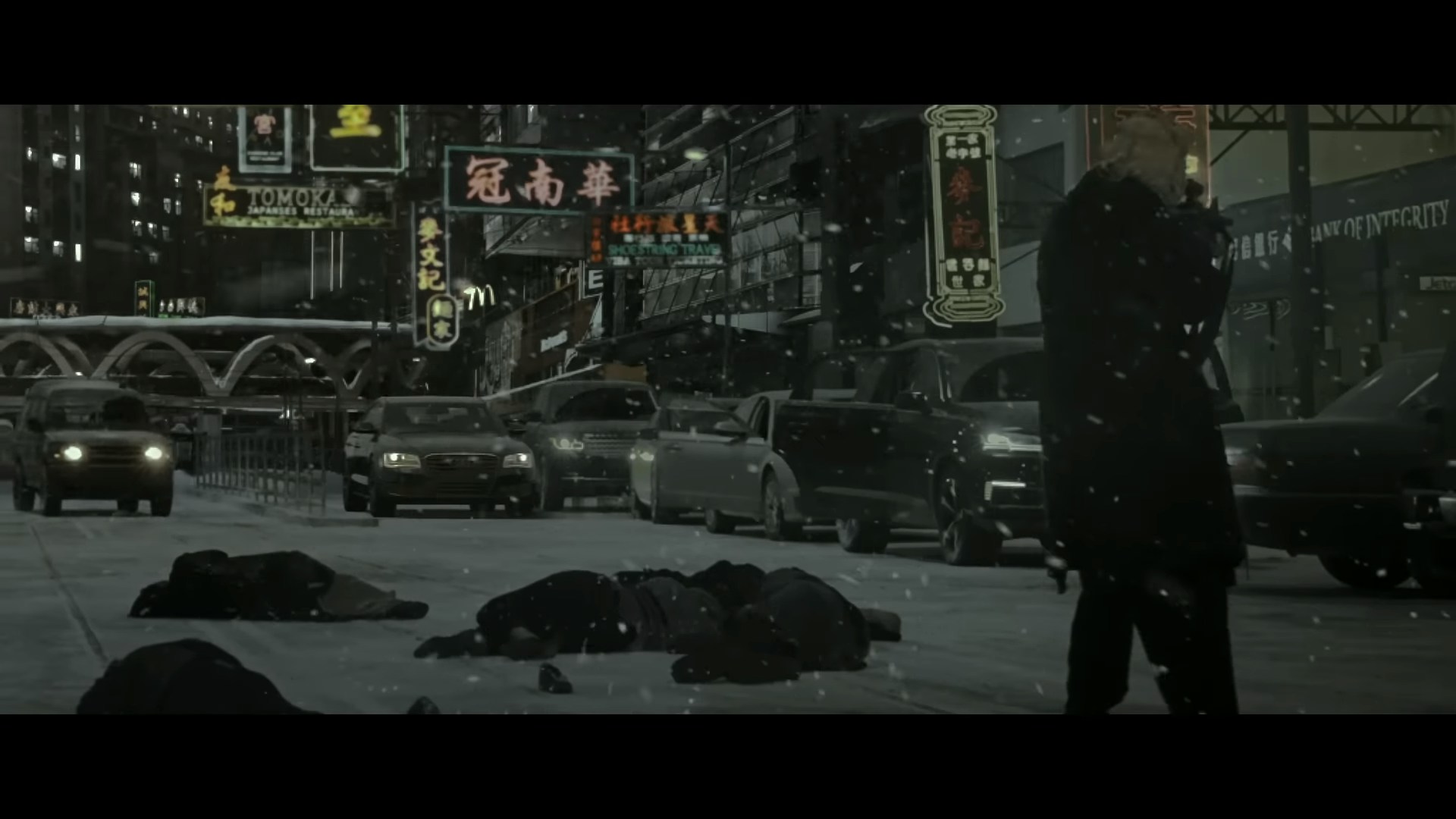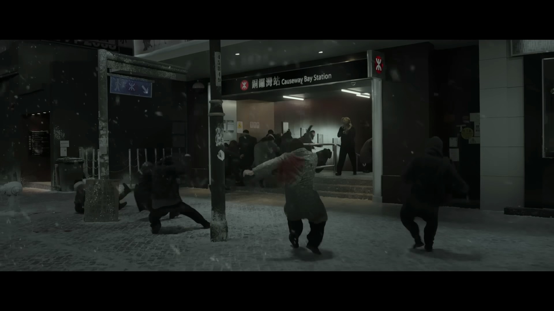 《風林火山》中呈現落雪的銅鑼灣,導演Juno 麥浚龍表示電影雖然以香港為背景,但這不是一套紀錄片,故此裡頭其實比較像是自己創造的世界。(《風林火山》影片截圖)