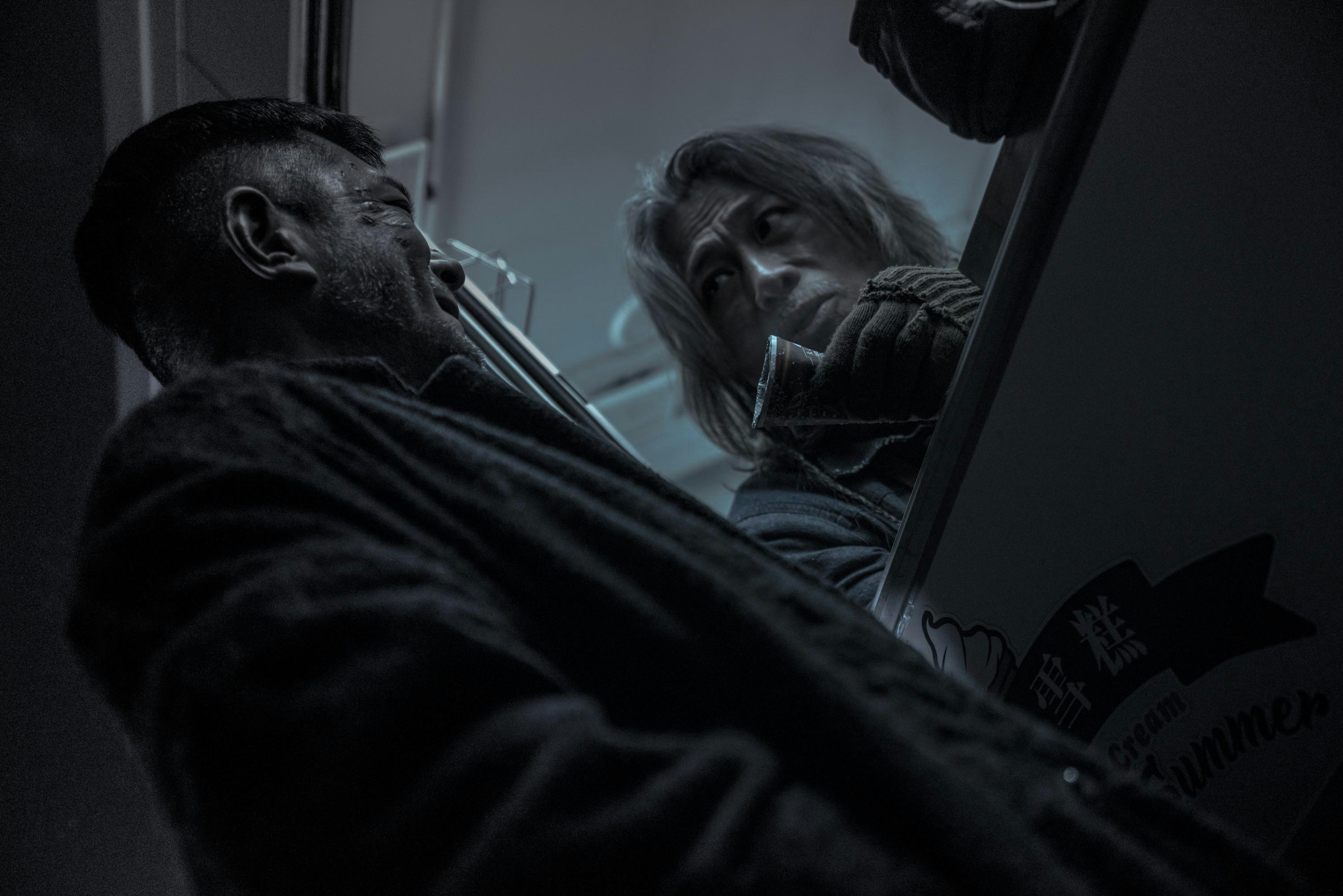 夏韶聲飾演的雪糕佬,屬於殺手集團一伙,協助程文星(古天樂 飾)清理作案現場。(《風林火山》劇照)