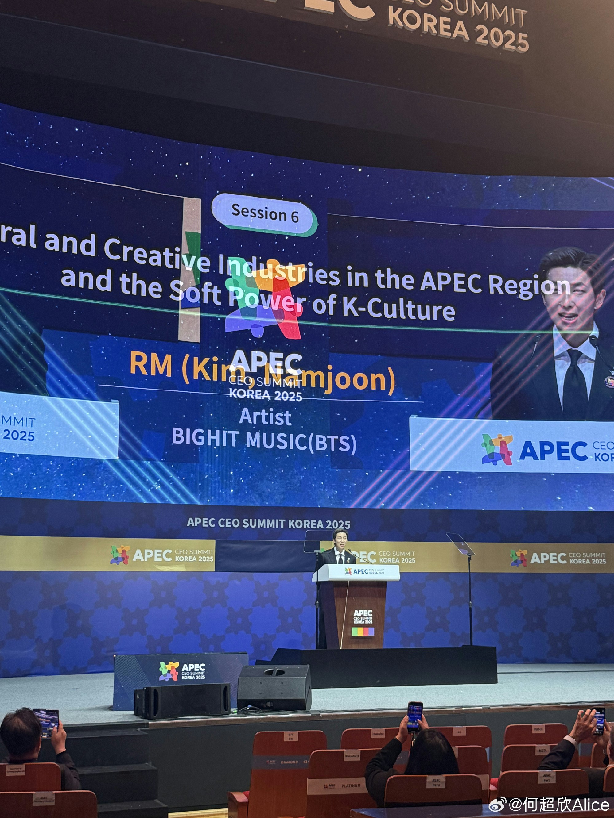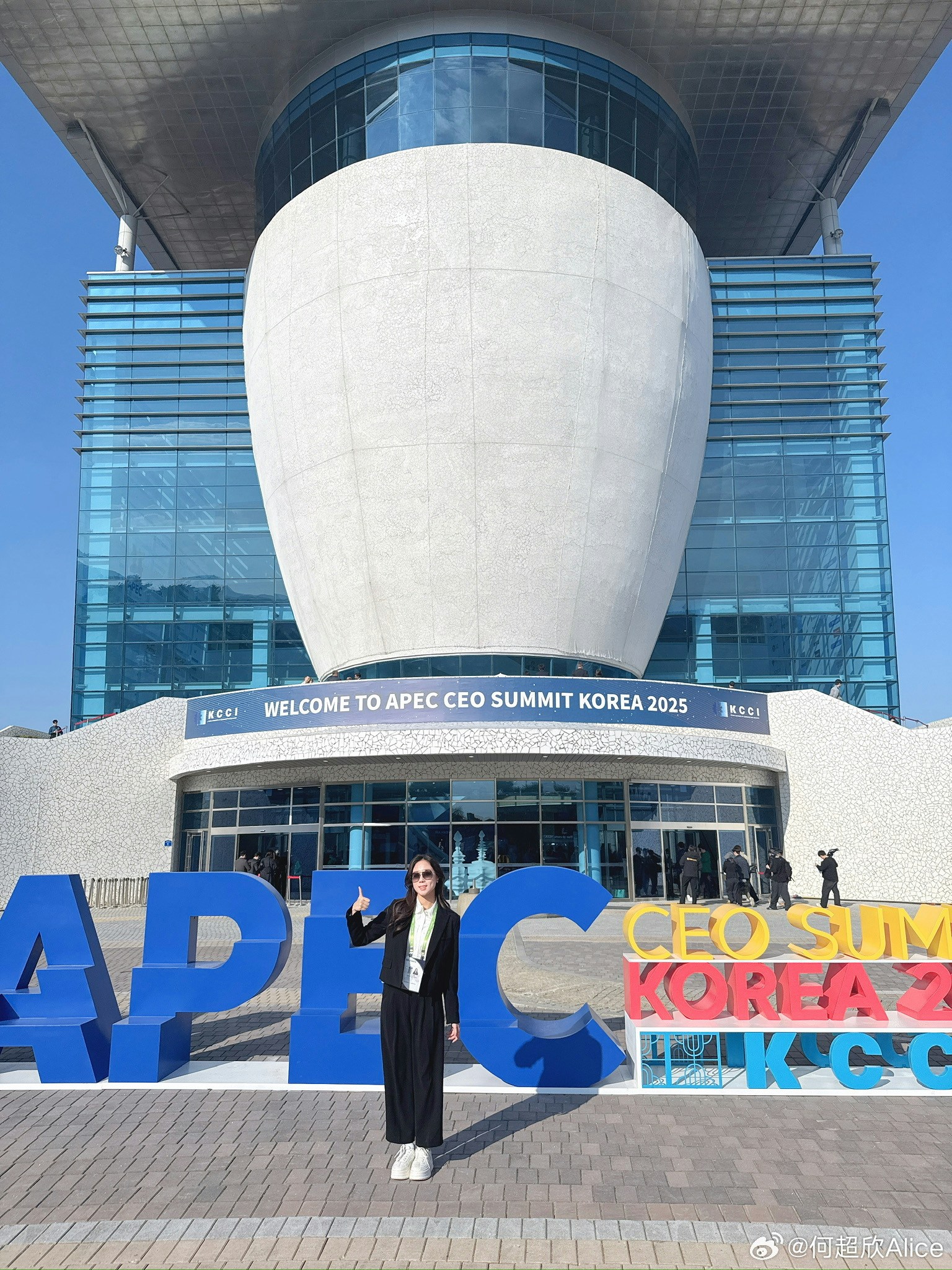 何超欣現身韓國慶州,出席2025年亞太經濟合作會議(APEC)。(微博@何超欣Alice)