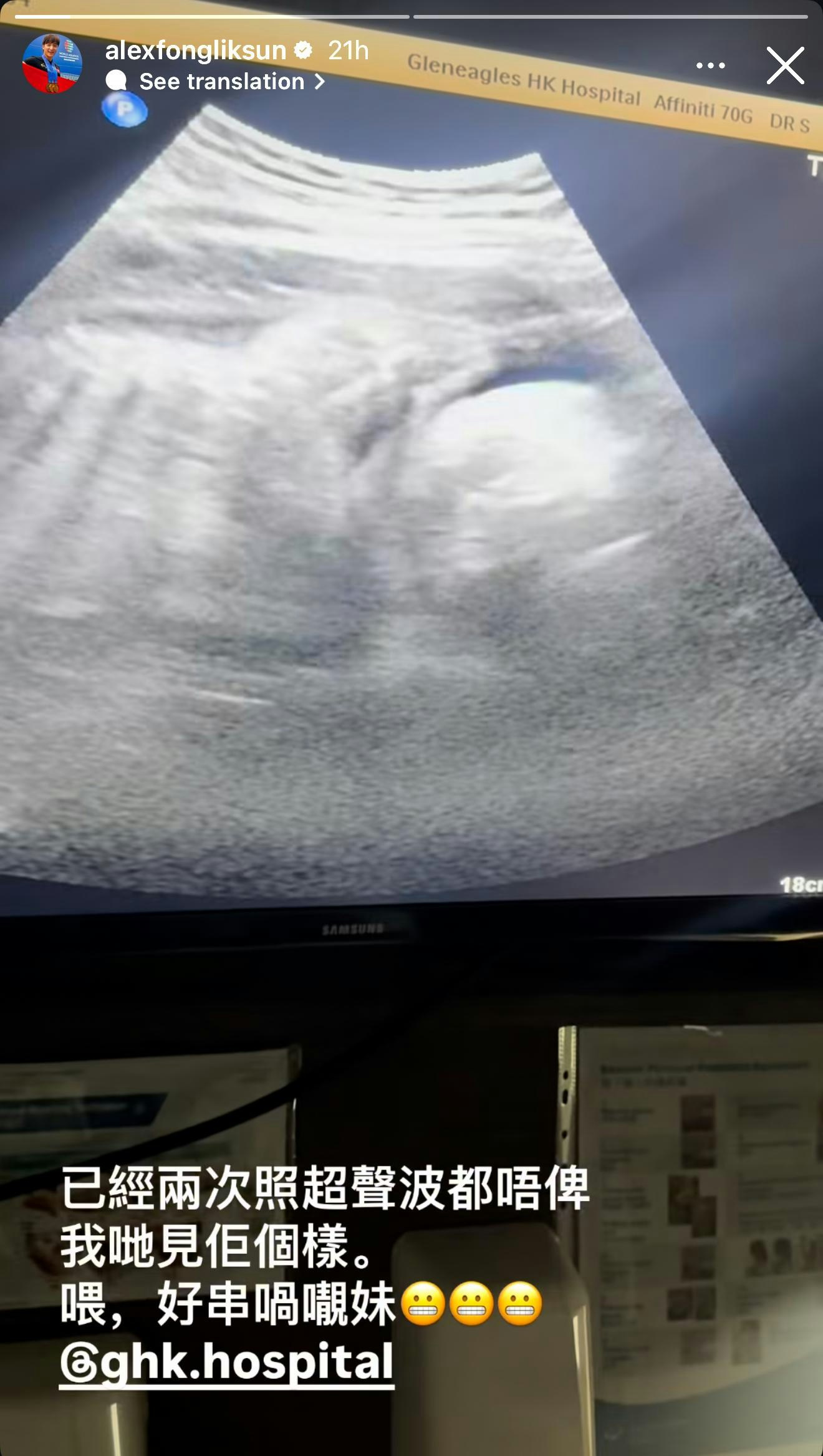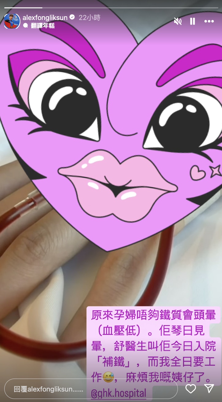 方力申自爆太太缺鐵緊急入院。(IG圖片)