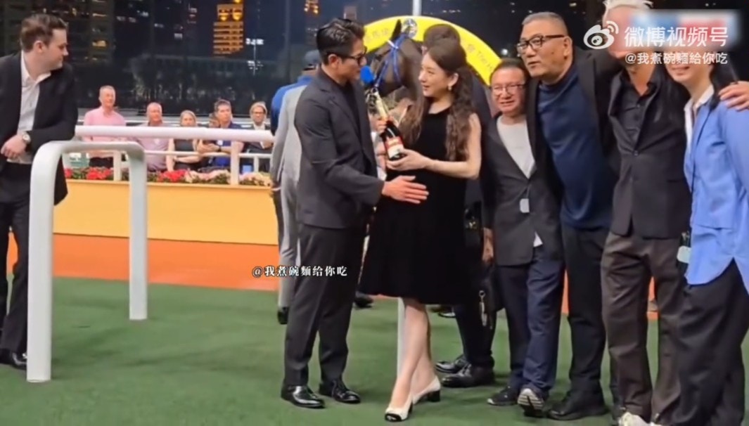郭富城早前與太太一同去馬場拉頭馬。(微博截圖)