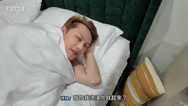 畫面中,王子從睡夢中被驚醒,睡眼惺忪地看著鏡頭,先是形容兩人是「兩個瘋婆」,接著他突然轉頭對著粿粿問了一句:「粿粿妳沒洗澡喔?」這句看似日常卻又極度私密的問話,立刻引發網友質疑。粿粿則笑著回答:「為了要突擊你,我怕我洗澡你就起來了。」