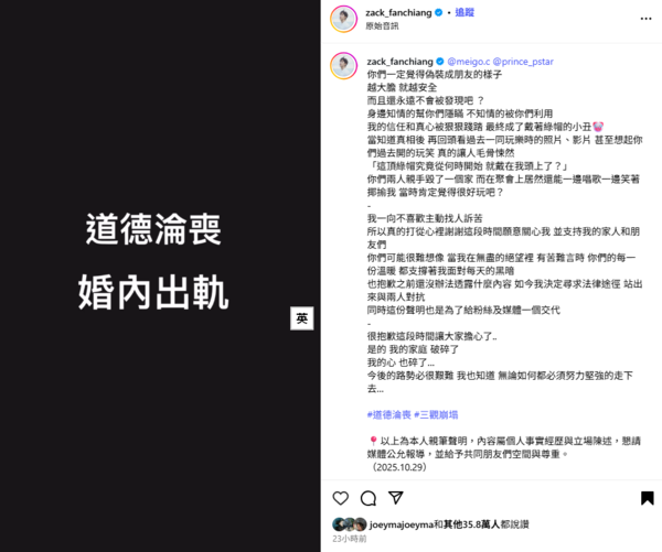 王子粿粿|范姜彥豐心碎長文 揭婚姻破裂內幕
