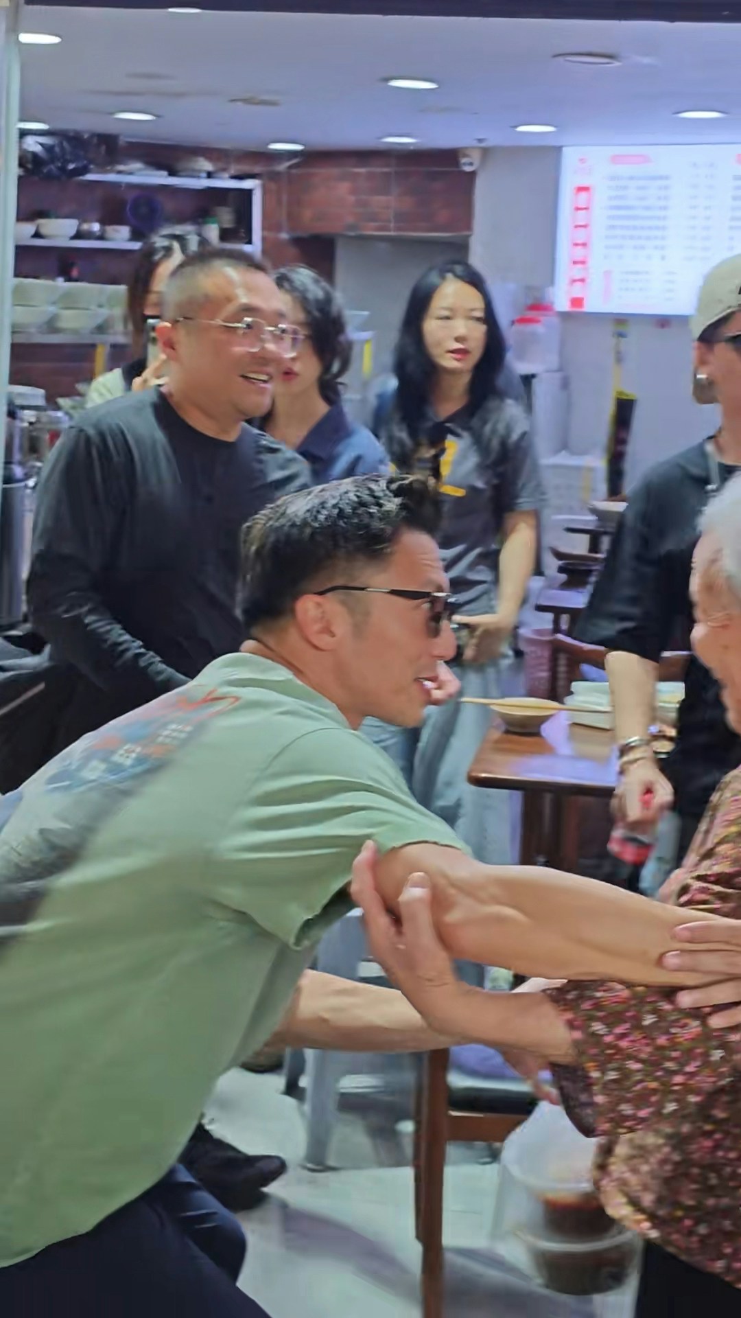 不少網民把當日偶遇謝霆鋒食麵影片放到社交網上分享,其中有一幕就曝光了他的超暖心舉動。當時在麵店門外有很多人在圍觀,謝霆鋒食完麵打包了便起身離開,當他見到門外的人群中有一名年紀老邁的婆婆,即上前跟對方打招呼,又扶住老婆婆的手跟她聊了兩句,兩人還合照,哄得婆婆好開心,最後謝霆鋒向婆婆雙手合十以示感謝,並跟她揮手道別。網民都留言大讚謝霆鋒真的好親民友善,十分暖心。