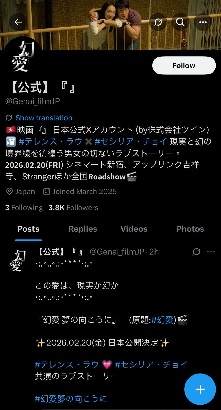 於日本發行《武替道》的電影公司將會發行《幻愛》,明年於日本上映。(Twitter/X截圖)