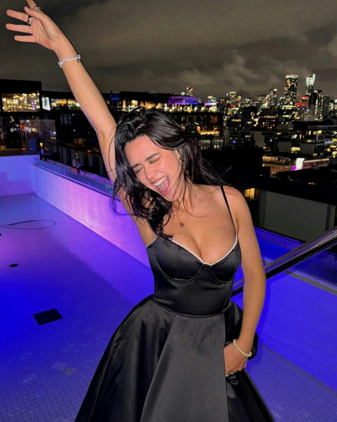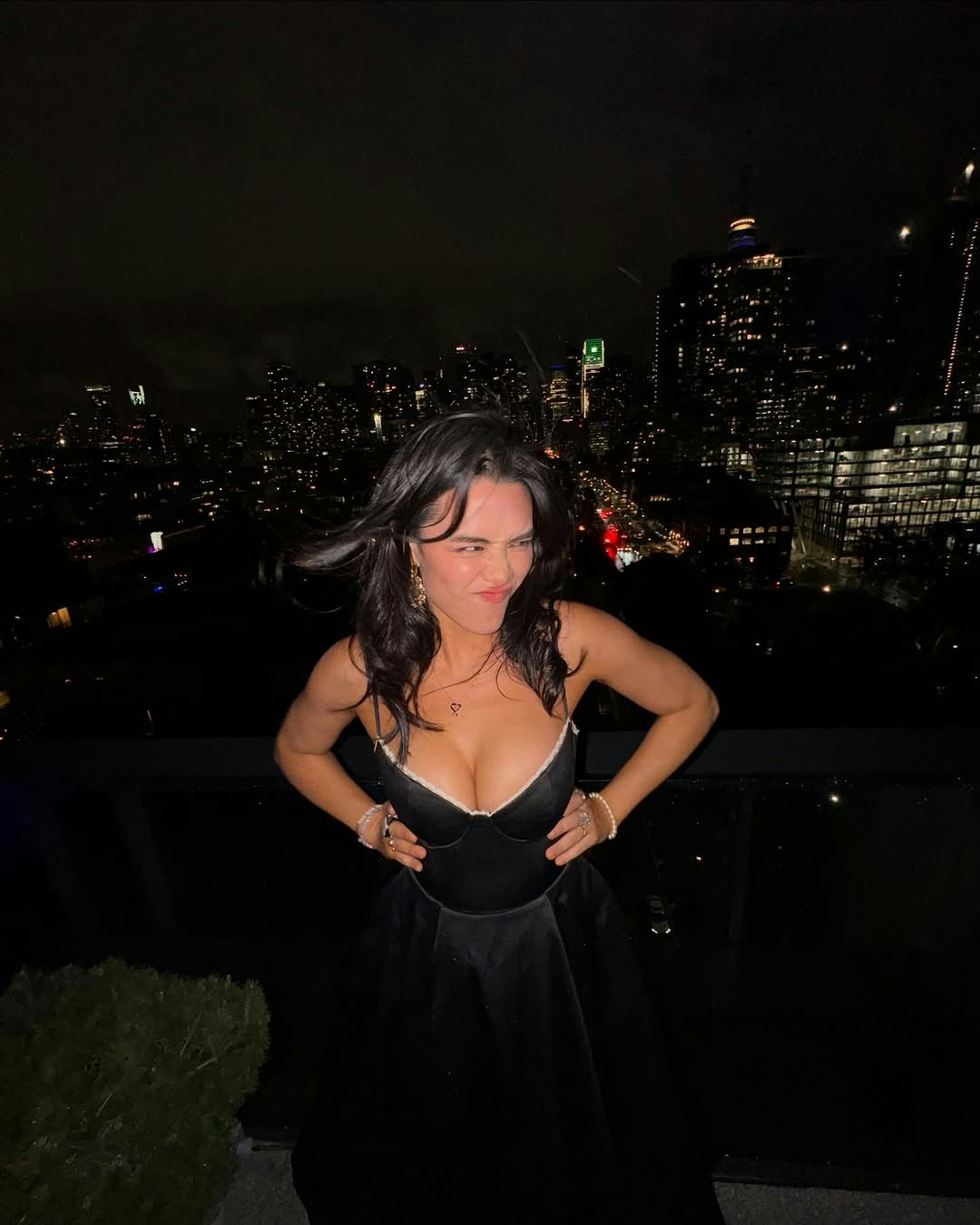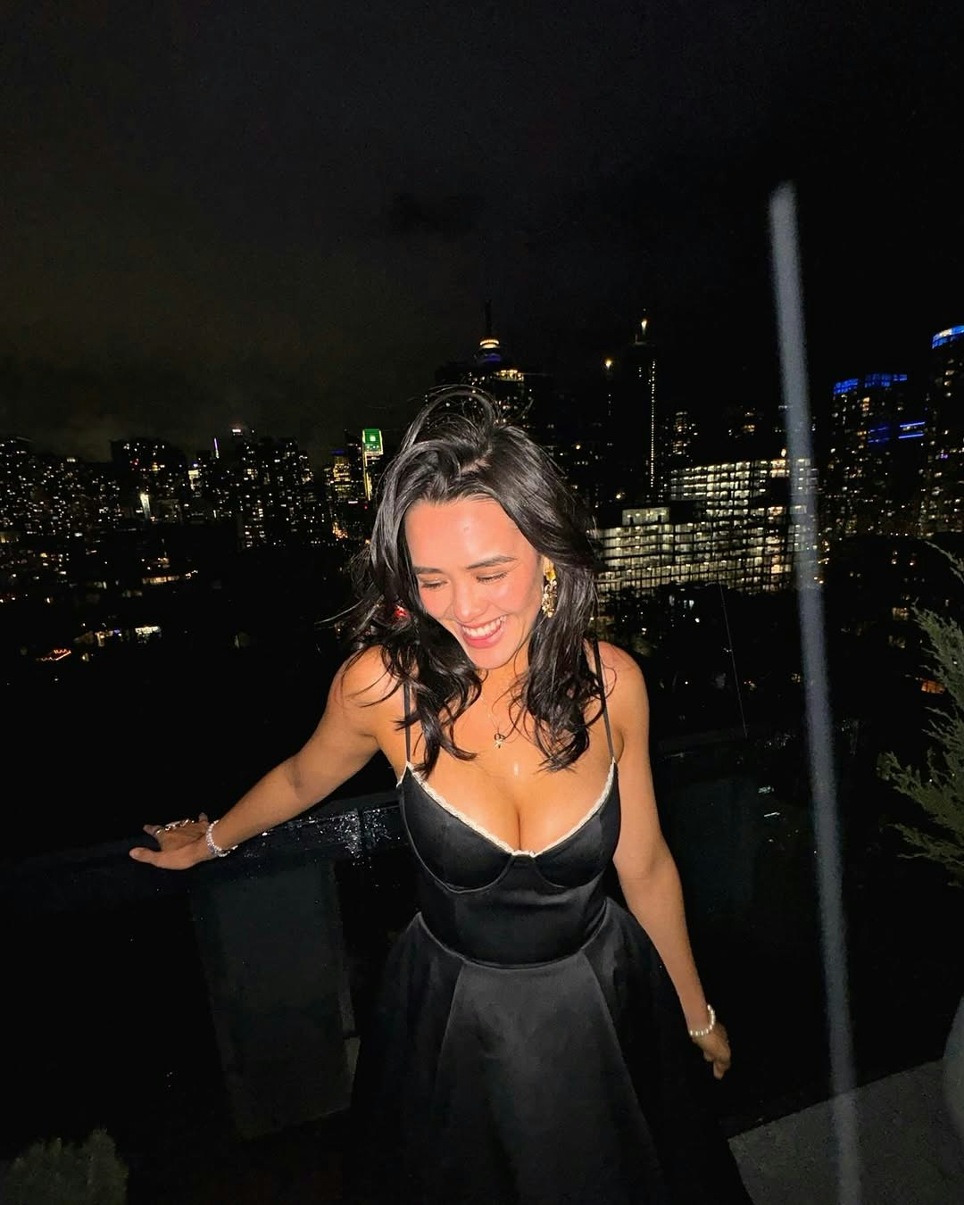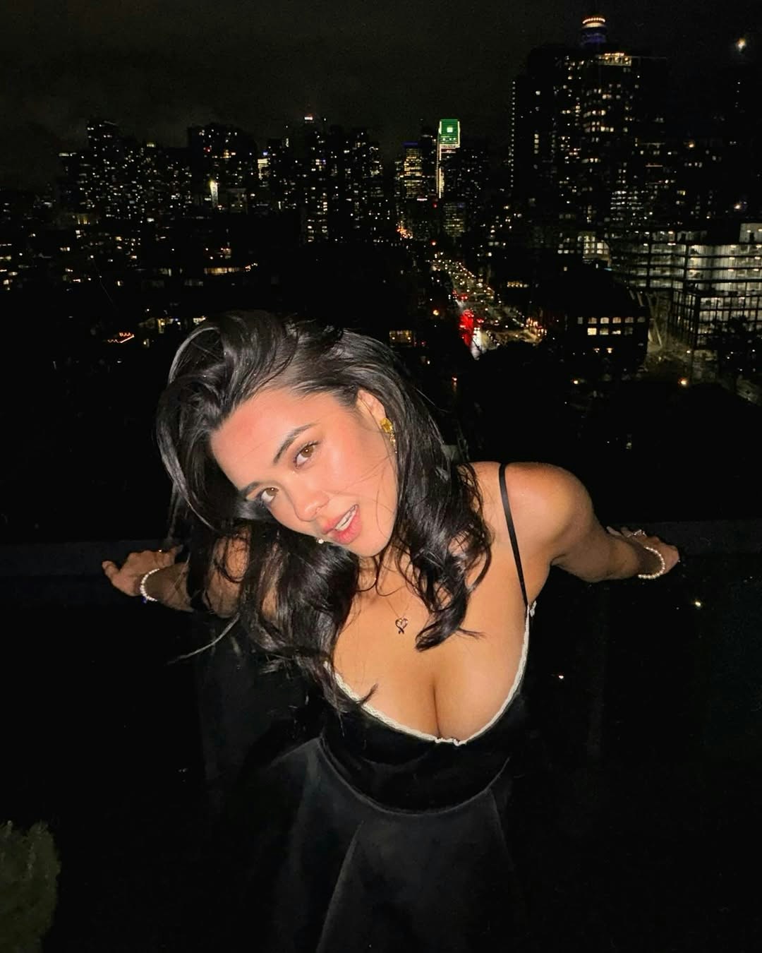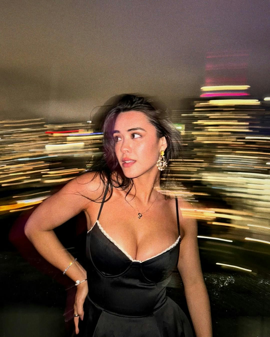 張敏鈞Yasmine以一身黑色吊帶長裙出席派對,傾倒豐滿上圍!(張敏鈞IG圖片)