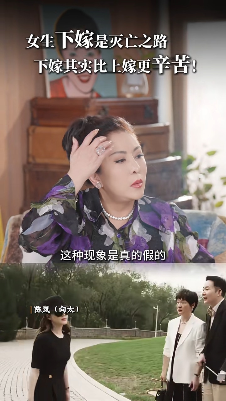 向太在片中表示「女生下嫁是滅亡之路」,之後就大爆富家女下嫁男演員的可能企圖:「那他求的可能就是沒關係,我可能演藝生涯也不知道會不會再上,下了也沒關係,我娶了個富家女。」而且在結婚後女方家人在金錢上都不給予支援:「房子都不給買,(房子)都屬於這個富家女名下的。」暗示這位男演員是為了錢才娶富家女的。