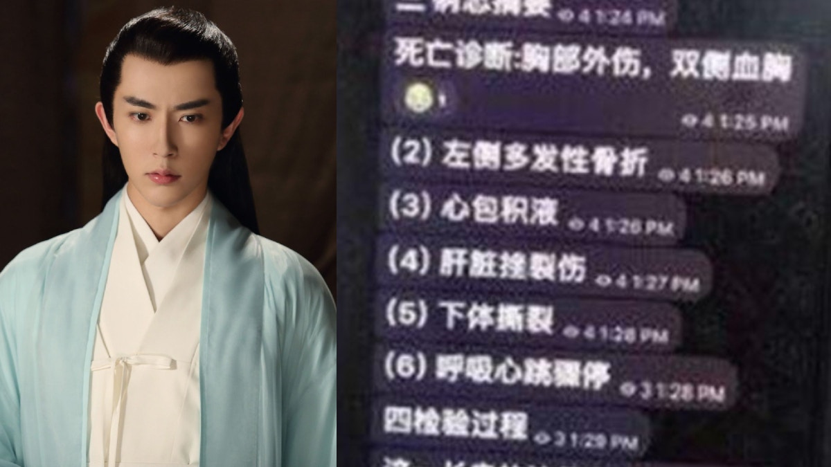死因診斷中列出了多處嚴重傷勢,包括胸部外傷、雙側血胸、左側多處骨折、心包積液、肝臟挫裂傷、下體撕裂,以及呼吸心跳驟停等。由於內容細節驚悚、傷勢嚴重,該網傳報告曝光後迅速引發關注。