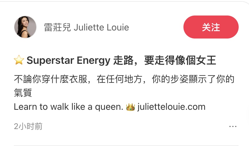 雷莊𠒇認為要走得像女王。(小紅書)