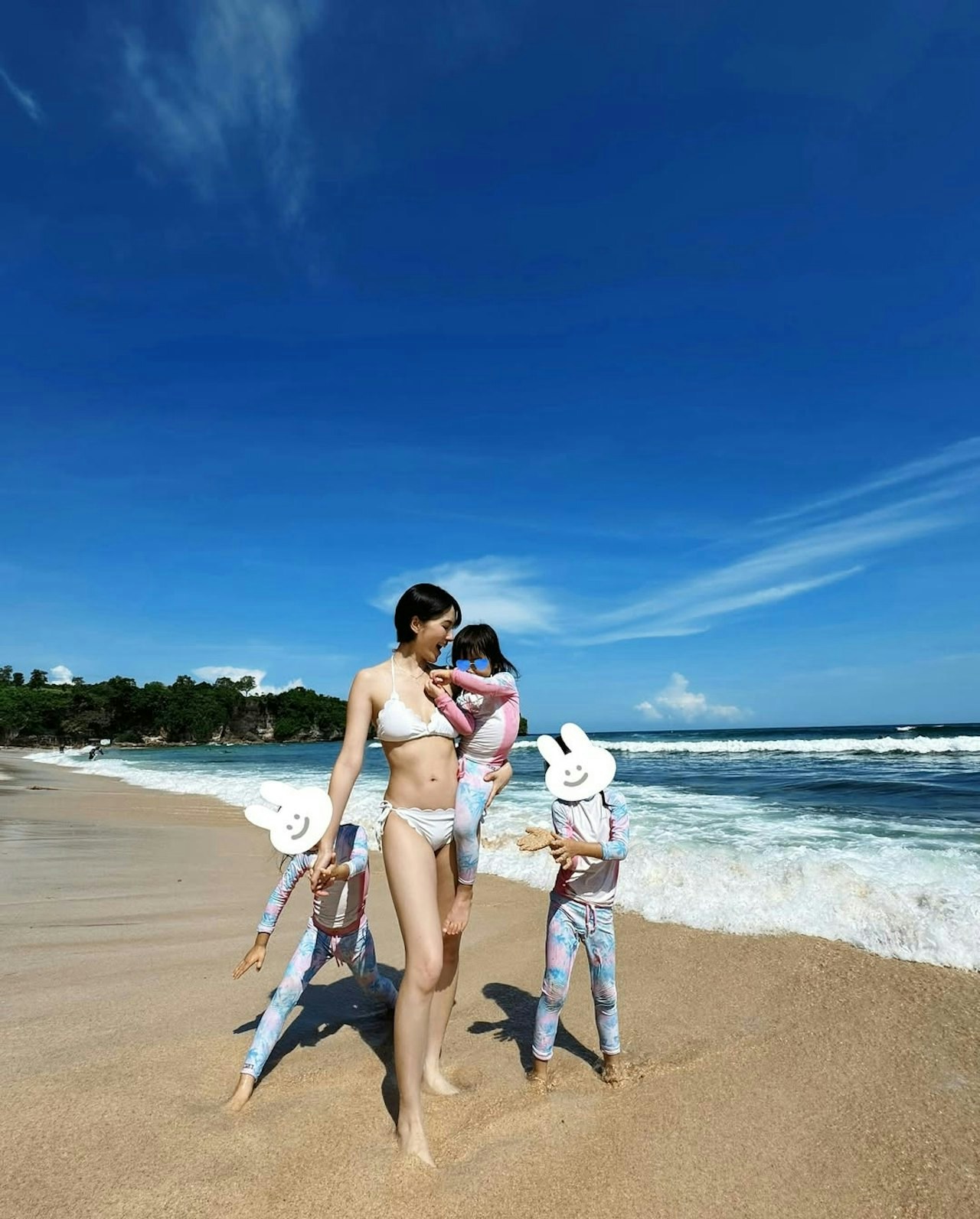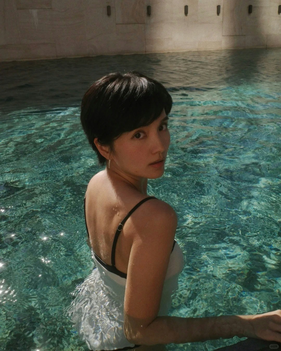 陳嘉寶接著說:「網購了一件黑白雙色的復古風泳裝,翻出了一雙好久沒戴的銀絲圈圈耳環。重點是用我的GR寶寶用自動模式,在接近黃昏的時候開拍。生圖就已經復古風滿滿。但我拍的有點偏紅,後期就批量調色,再加一點顆粒。基本上五分鐘就搞定。什麼光影對比、細節什麼的都不用調。器材、時間跟陽光抓對了就好!」除了網民看到心心眼,大讚「靚媽」外,蔡思貝、陳瀅、賴慰玲及蔡穎恩等圈中也紛紛留言like爆,當中賴慰玲更直呼:「引死人」。