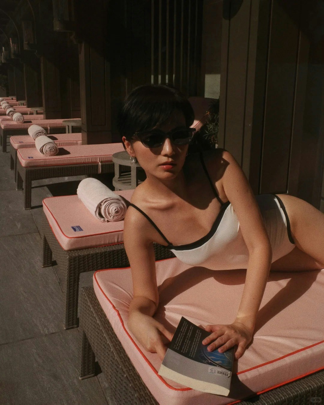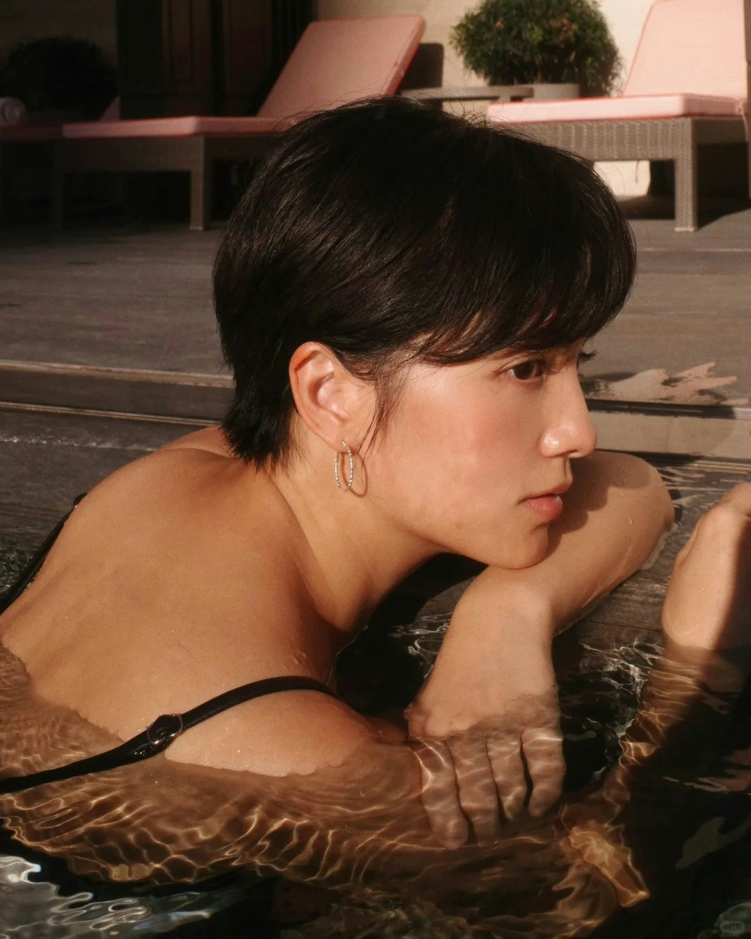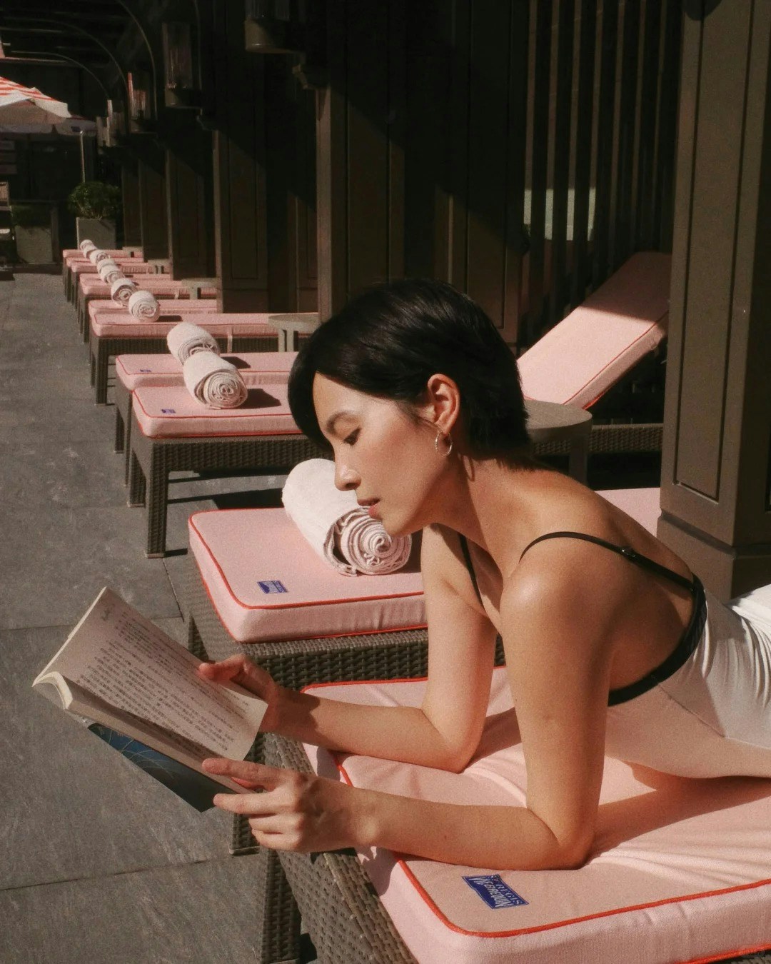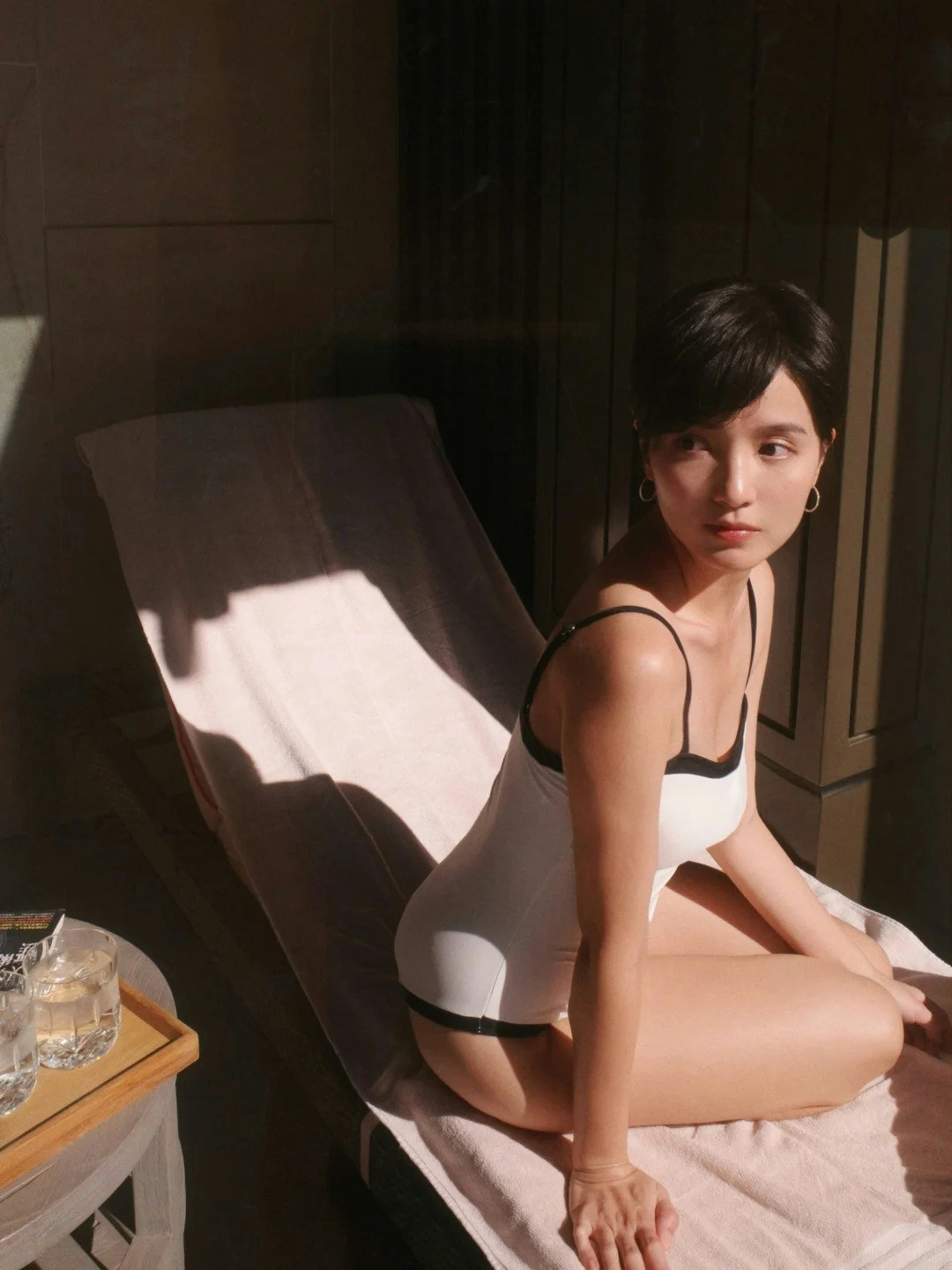 相中,陳嘉寶大玩復古風,在夕陽餘暉的映照下,於沙灘床上擺出嫵媚誘人甫士,輕露事業線兼大騷美腿,全身零贅肉令人驚嘆;至於另一組圖中,陳嘉寶則浸在泳池中,展示近照美顏,整輯相結合美感和性感,非常吸睛。她寫道:「夕陽正好。Let‘s enjoy our golden hour.」,並分享其拍攝這輯復古泳照的心得:「趁著天氣還沒涼起來,緊握夏天的尾巴,來一幀想拍已久的復古風泳裝照。」