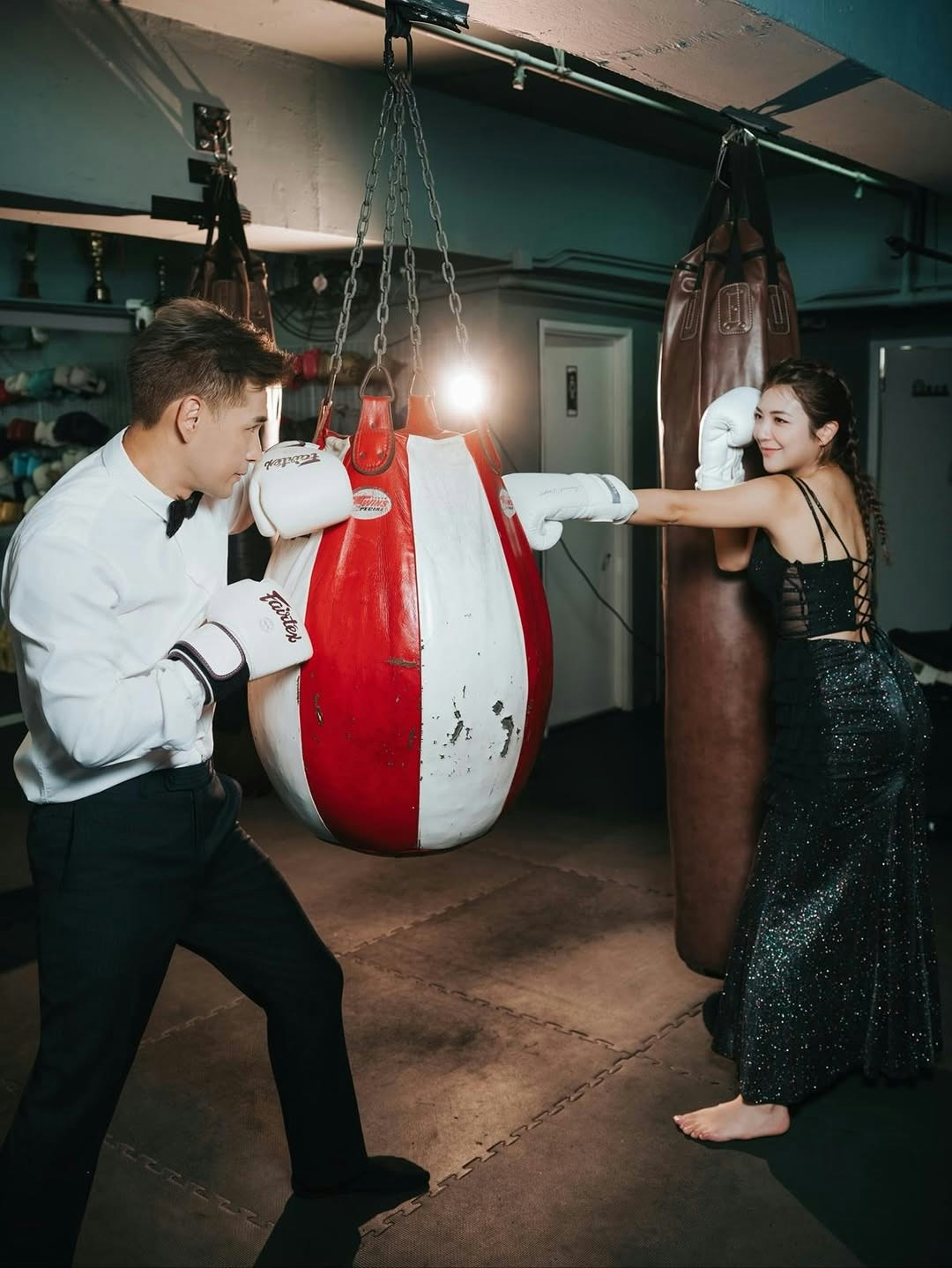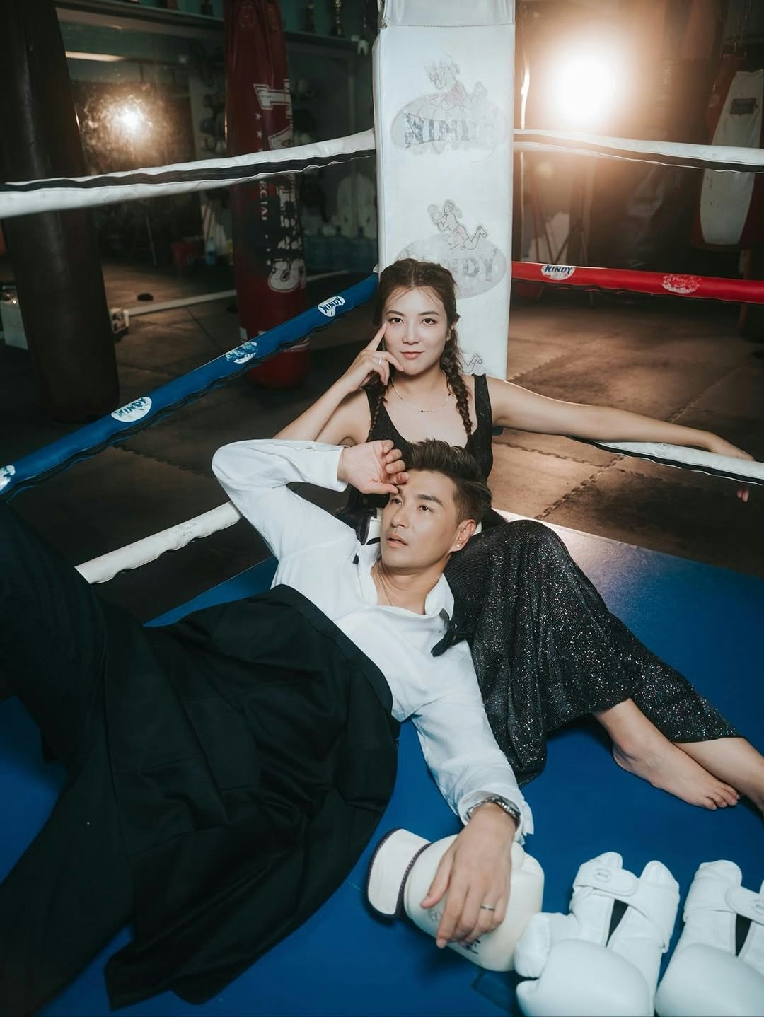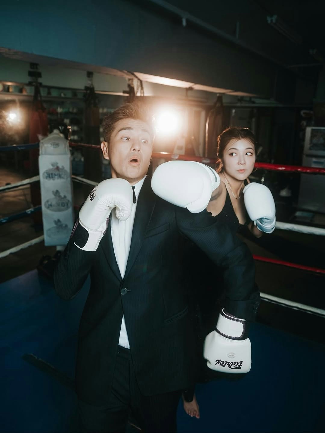 此外,陳展鵬也分享了一輯玩味十足的夫妻紀念照。相中,陳展鵬身穿筆挺西裝打上煲呔,單文柔則穿上黑色低胸透視長裙,性感示人。兩人戴上拳擊手套一起打沙包,之後又在擂台上作狀「互抽」,且非常入戲,陳展鵬在太太面前不介意做「下靶位」甘心被打,其中幾張照片,他裝作被太太擊中面部,擺出多個趣怪表情,兩公婆完美演繹何謂「打者愛也」。陳凱琳、陳煒、姚子羚及張寶兒等不少圈中好友和網民紛紛祝賀,祝兩人越來越甜蜜。