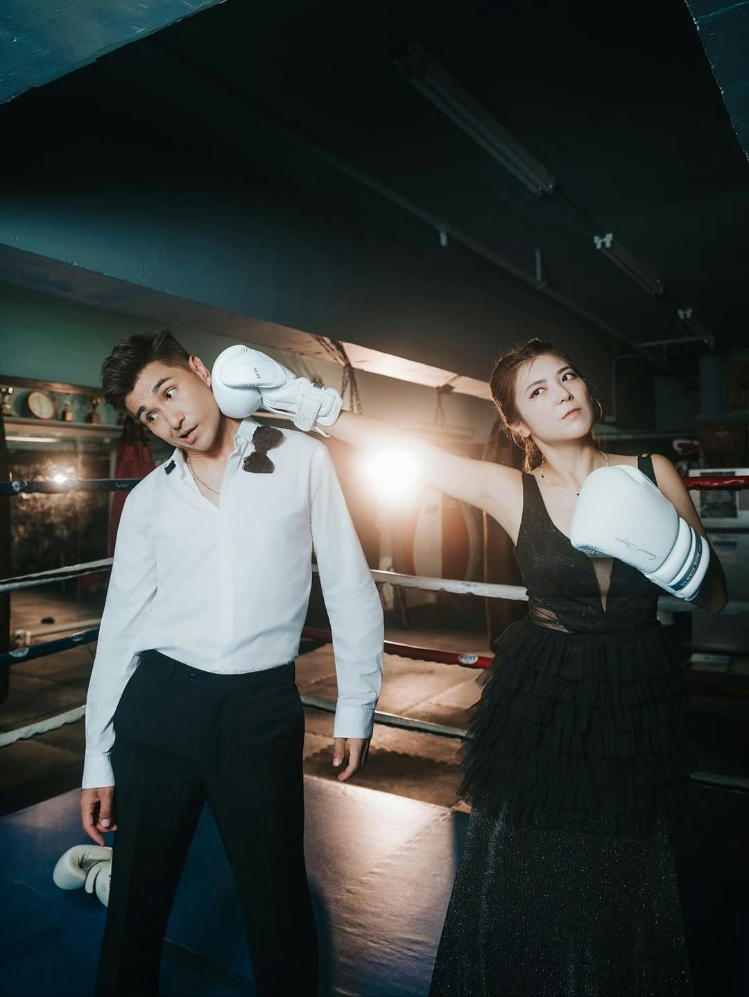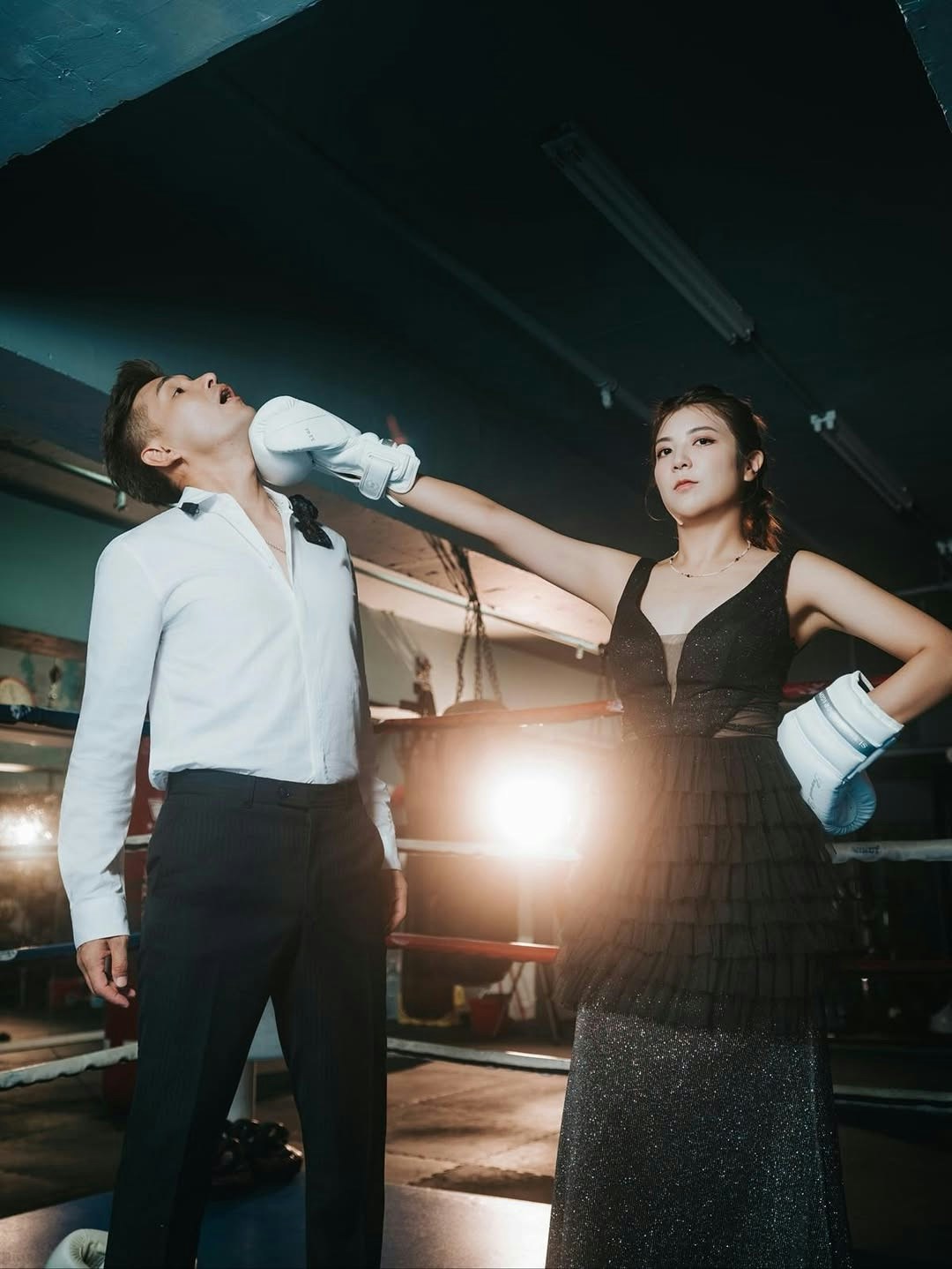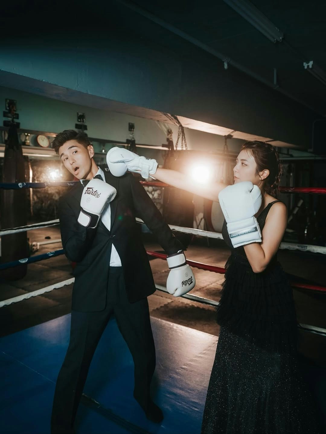 此外,陳展鵬也分享了一輯玩味十足的夫妻紀念照。相中,陳展鵬身穿筆挺西裝打上煲呔,單文柔則穿上黑色低胸透視長裙,性感示人。兩人戴上拳擊手套一起打沙包,之後又在擂台上作狀「互抽」,且非常入戲,陳展鵬在太太面前不介意做「下靶位」甘心被打,其中幾張照片,他裝作被太太擊中面部,擺出多個趣怪表情,兩公婆完美演繹何謂「打者愛也」。陳凱琳、陳煒、姚子羚及張寶兒等不少圈中好友和網民紛紛祝賀,祝兩人越來越甜蜜。