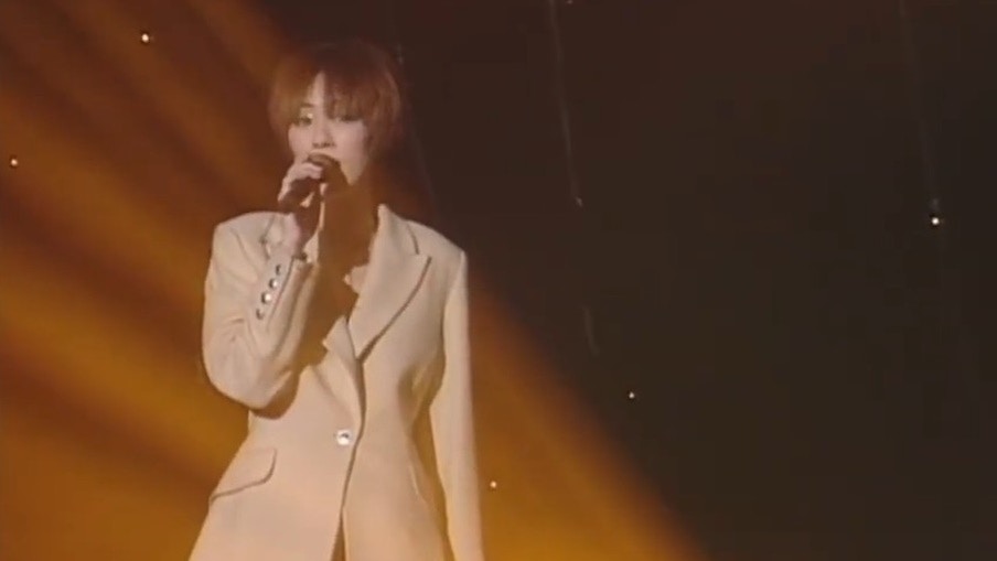 在1995年與王菲同台合作演唱鄧麗君的作品《小城故事》。(影片截圖)