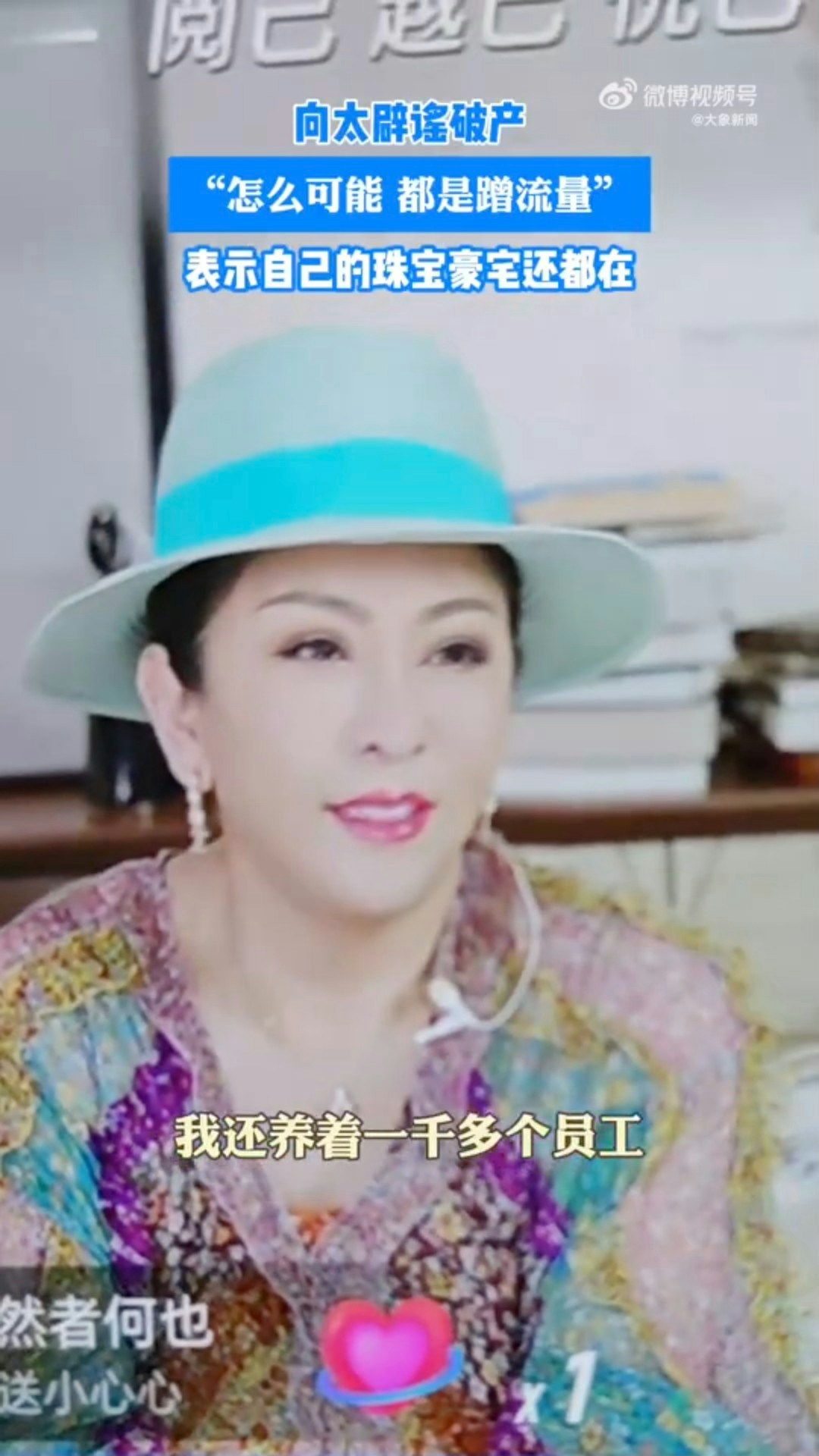 向太在直播中開腔:「我的豪宅、珠寶收藏都還在,還養著1000多名員工,怎麼可能破產?」(直播影片截圖)