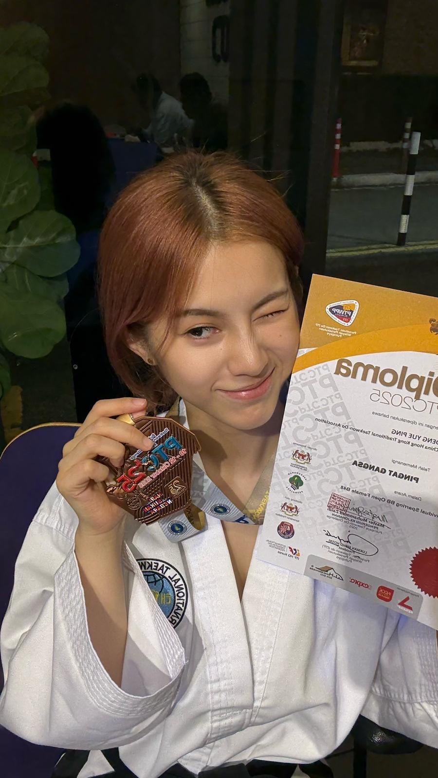 鄧月平於馬來西亞舉行的跆拳道賽事奪得銅牌。(大會提供)