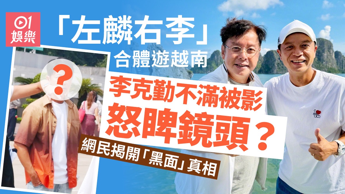 現年75歲的「校長」譚詠麟,與比他小18歲的李克勤感情深厚,克勤更曾被校長視為接班人,後來兩人還組成「左麟右李」,大受歡迎。不過自十周年演唱會後,「左麟右李」暫未有再開騷的消息,讓無數粉絲望穿秋水。雖然演唱會未有期,但二人私下經常相聚,早前,他們便偕同一眾好友前往越南,展開一年一度《左麟右李and Friends》開心旅行,玩足五日四夜。不過,有網民在當地野生捕獲他們時,竟影到向來友善的克勤,當眾對著鏡頭「黑臉」,引起熱議?
