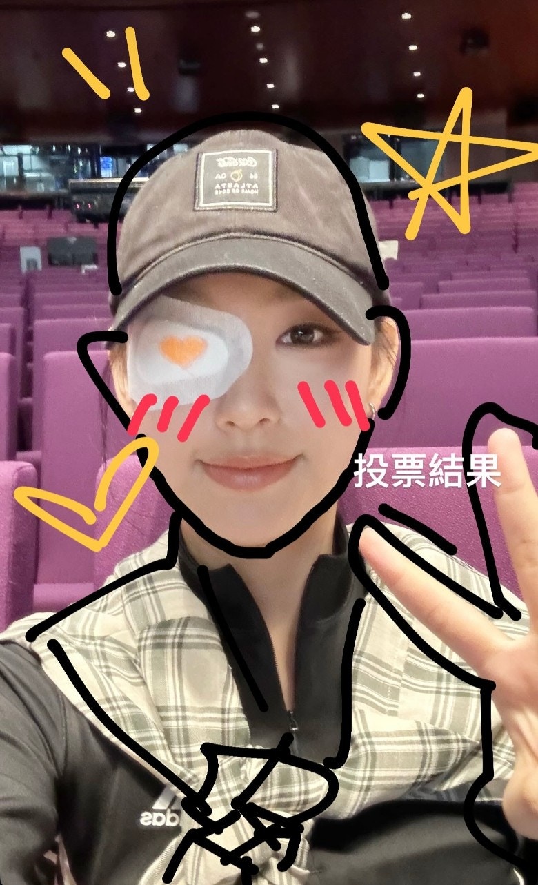 Gigi與海兒主演的音樂劇《一束光——高錕的記憶》,門票於本月初開賣即售罄,近日忙於綵排的Gigi昨日在IG發布了眼睛受傷的照片,更需要貼上紗布。面對大家的疑問,Gigi並未透露受傷原因,反而俏皮地表示:「大家覺得我這個左邊眼畫什麽好?來投個票~」。 她提供了憤怒眼、心心眼、熊貓眼、無語眼四個選項。最終在粉絲投票下,她選擇了可愛的心心圖案,相信傷勢應無大礙。