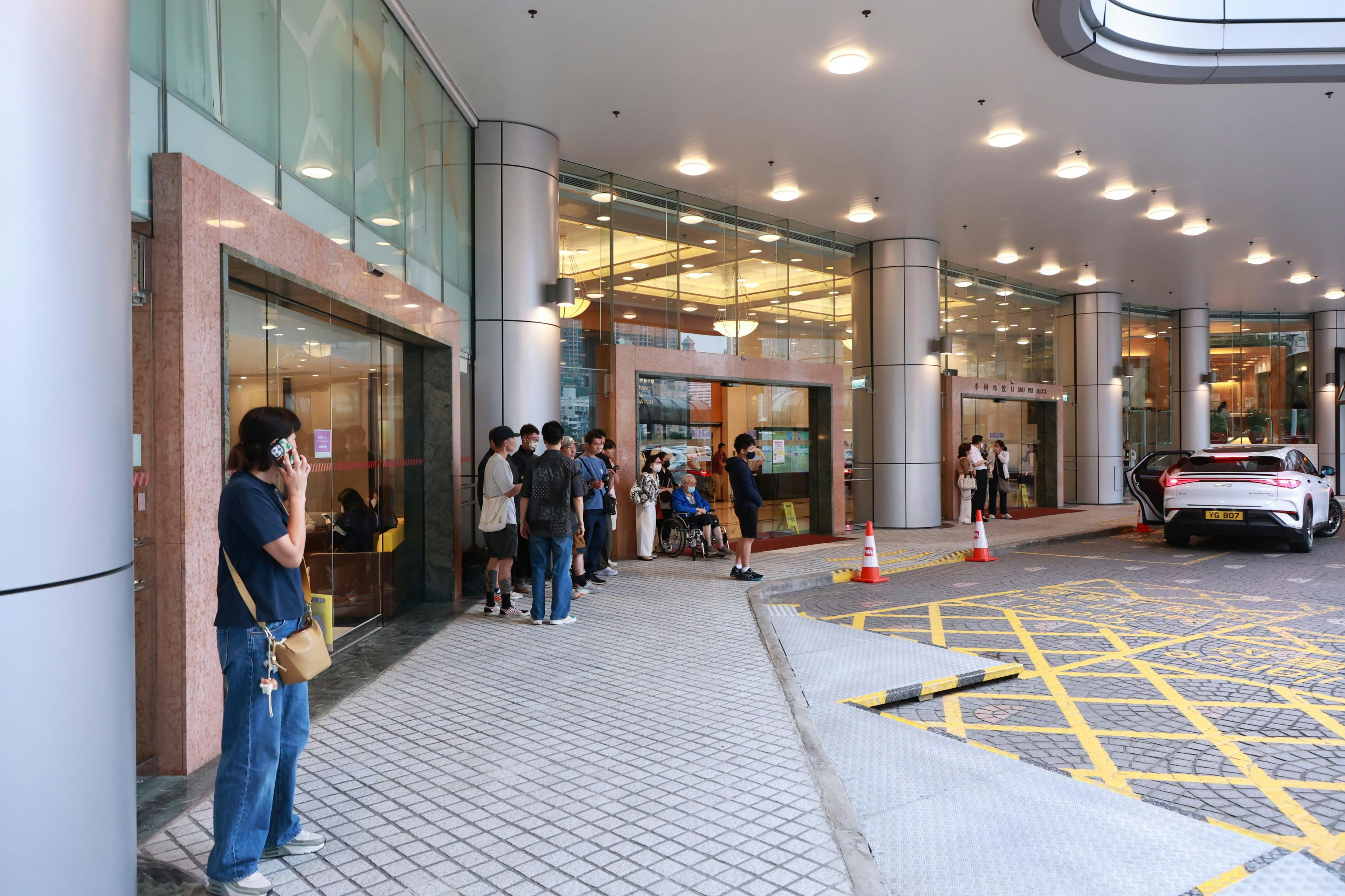 大批傳媒在醫院守候。(葉志明 攝)