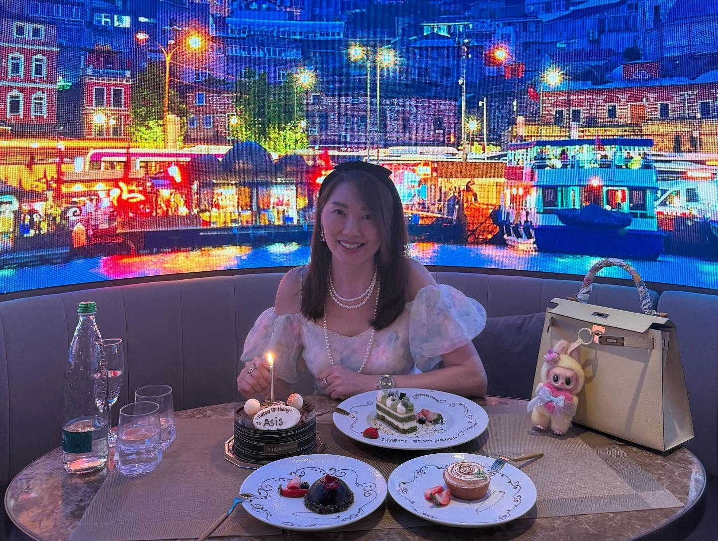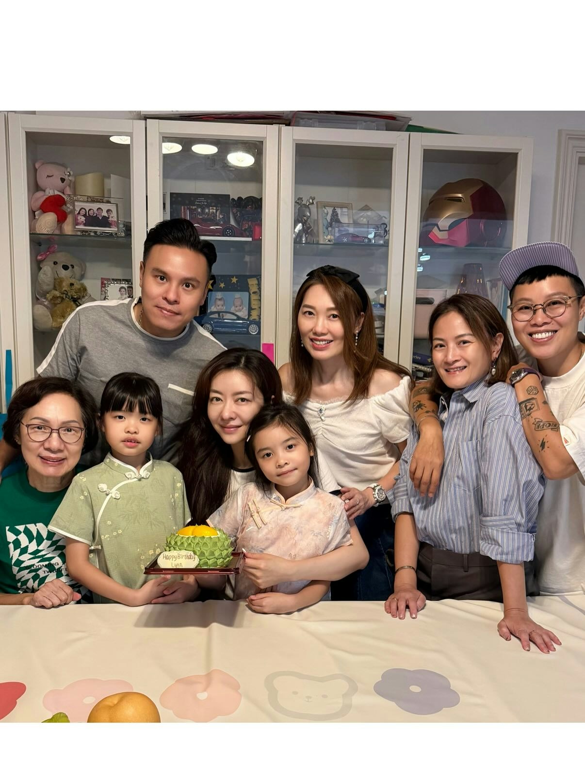 名模熊黛林(Lynn)在2016年與百億富二代、郭可盈弟弟郭可頌結婚後,榮升百億豪門少奶奶,並誕下一對雙胞胎女兒Kaylor同Lyvia,一家四口幸福美滿。昨日(10日)熊黛林迎來45歲生日,她在IG曬出多張慶生照,並寫道:「開心嘅原因有好多,可以係今日天氣好好,也可以係頭髮長長咗,仲可以係收到好多祝福,祝我生日快樂❤️」相中所見,熊黛林同老公頭貼頭合照,大曬恩愛,而奶奶郭媽媽、大家姐郭可欣、三家姐郭可思都有一起慶祝,畫面溫馨有愛!