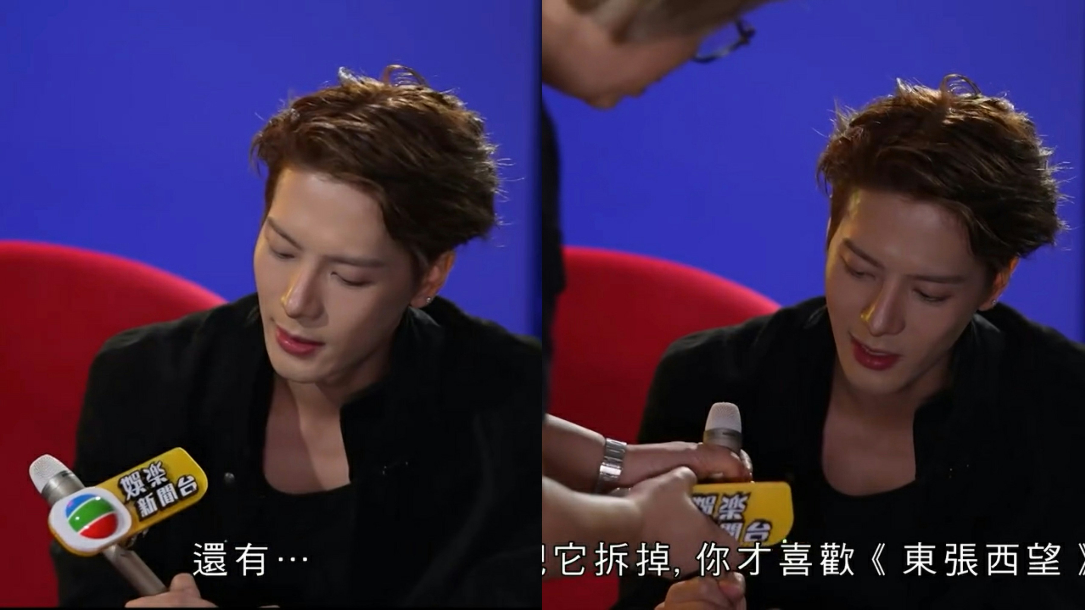 王嘉爾原本揸住《娛樂新聞台》的咪牌。(截圖)