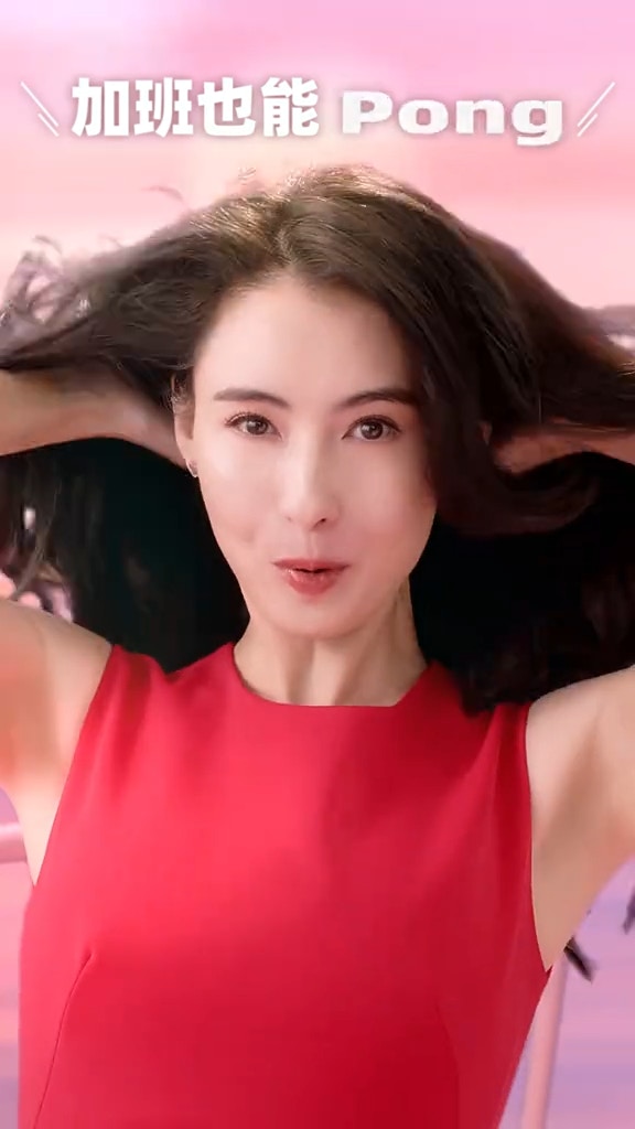 張栢芝在新廣告中的樣子顯得不自然。(抖音)