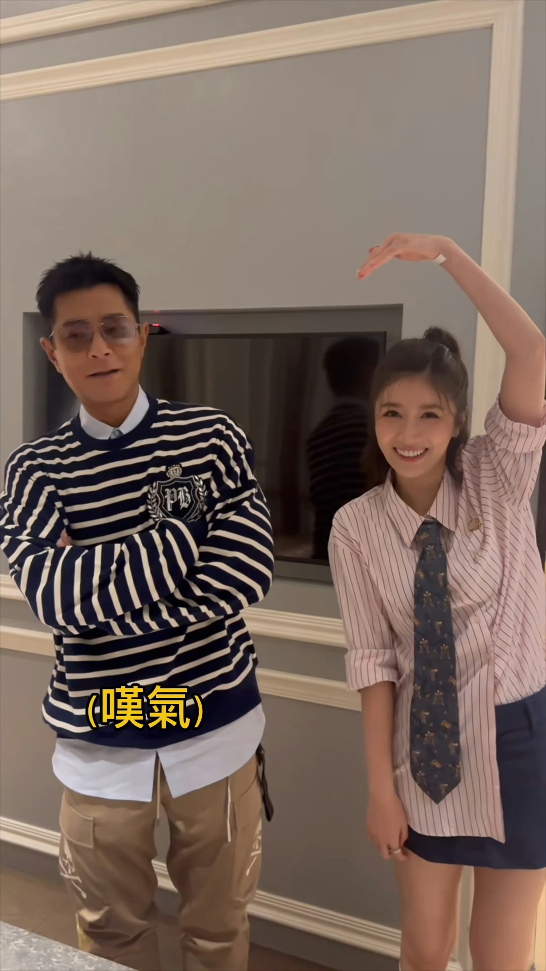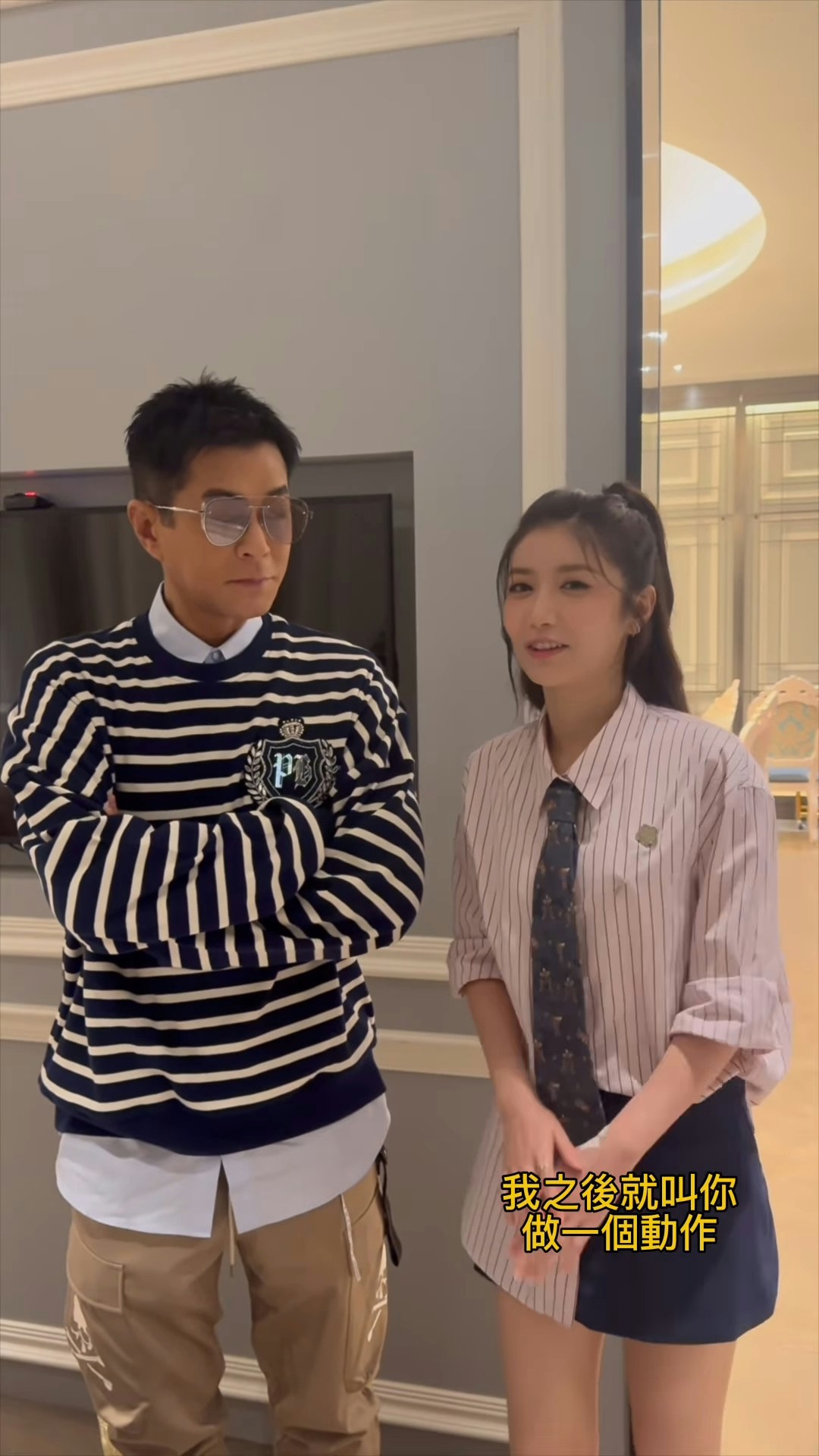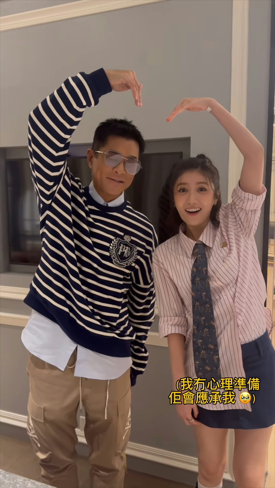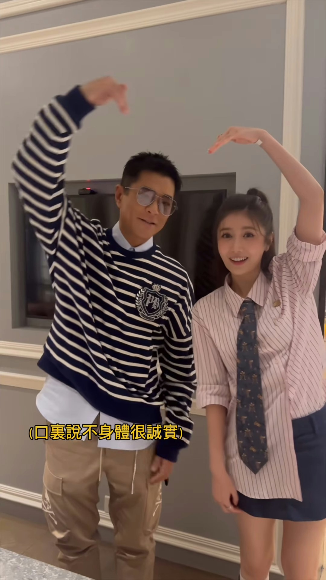 最後古天樂仍配合陳苡臻的動作一齊派心心。(陳苡臻IG影片截圖)