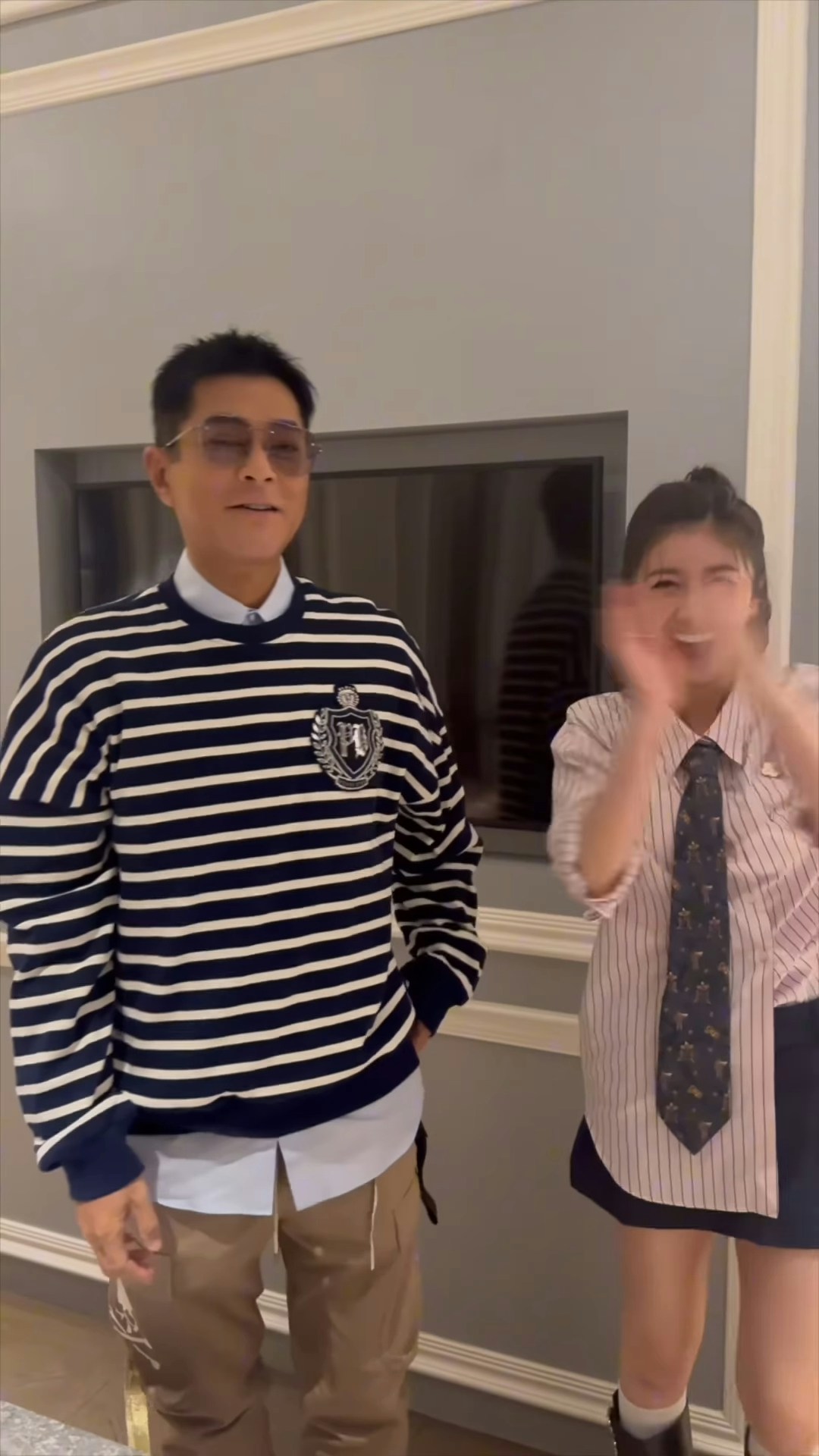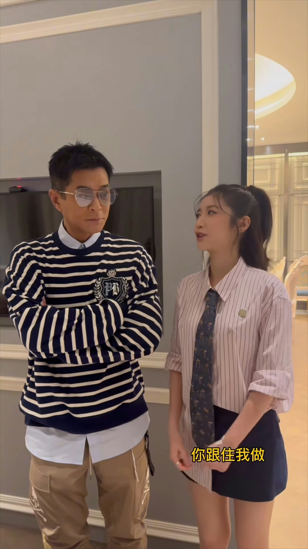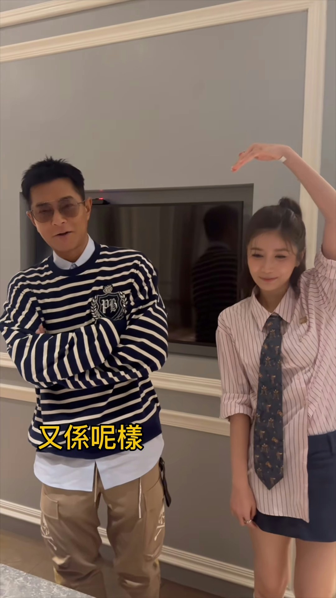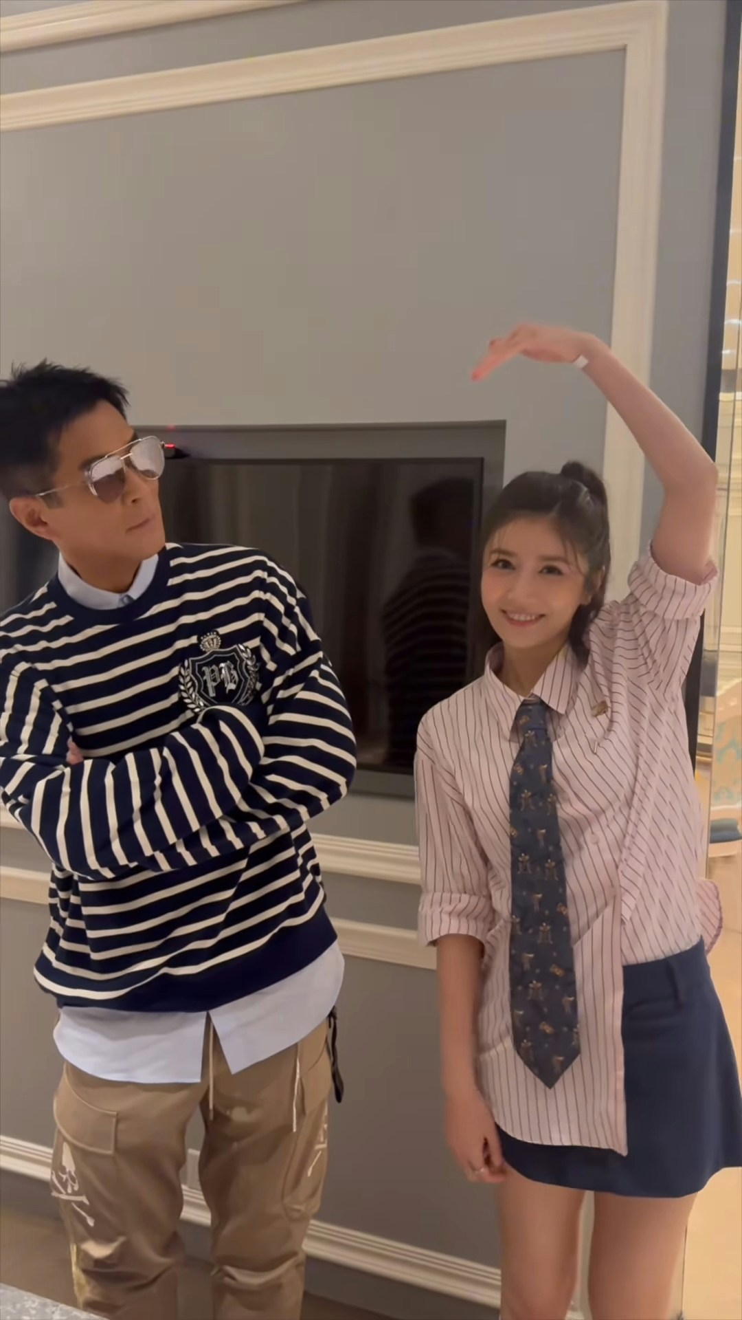 最後古天樂仍配合陳苡臻的動作一齊派心心。(陳苡臻IG影片截圖)