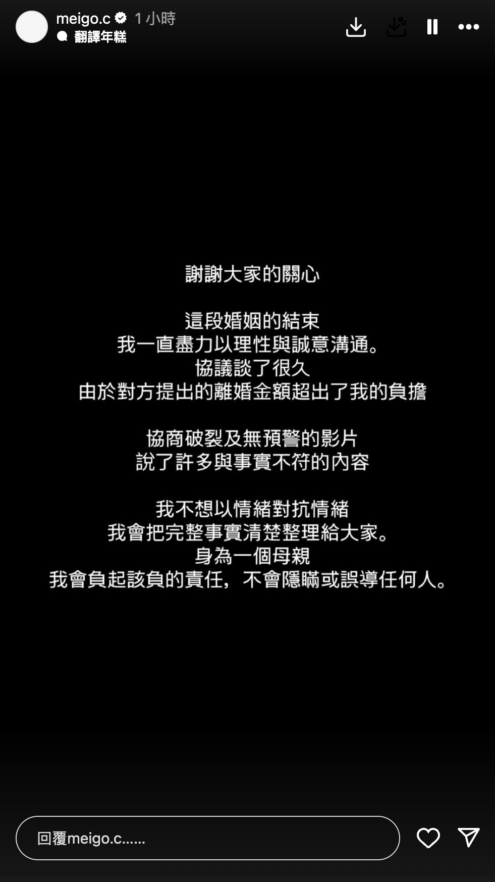 范姜彥豐在IG分享了以「道德淪喪,婚內出軌!」為題的片段親自發聲,指控粿粿婚內出軌王子。(IG圖片)