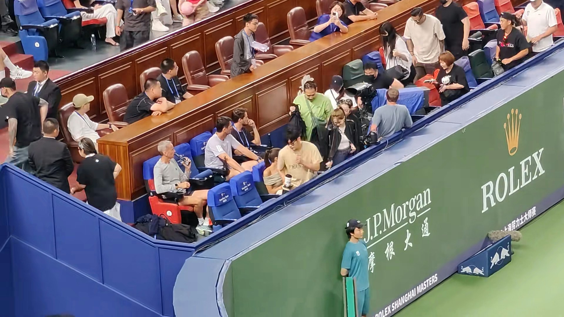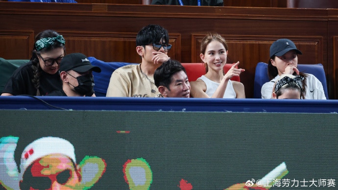 周杰倫與太太入場觀賞賽事,被大會鏡頭捕捉到。(微博@上海勞力士大師賽)
