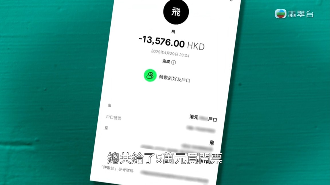 雖然陳小姐是H先生的員工,但H先生照收她「黃牛價」,每張門票手續費加完又加,最後要5萬元才能訂:「我係4月尾幫佢買,要加多一千蚊先可以買到。」當然最後H先生還是「走數了」,門票交不出來,陳小姐更要自掏腰包賠錢絡朋友。