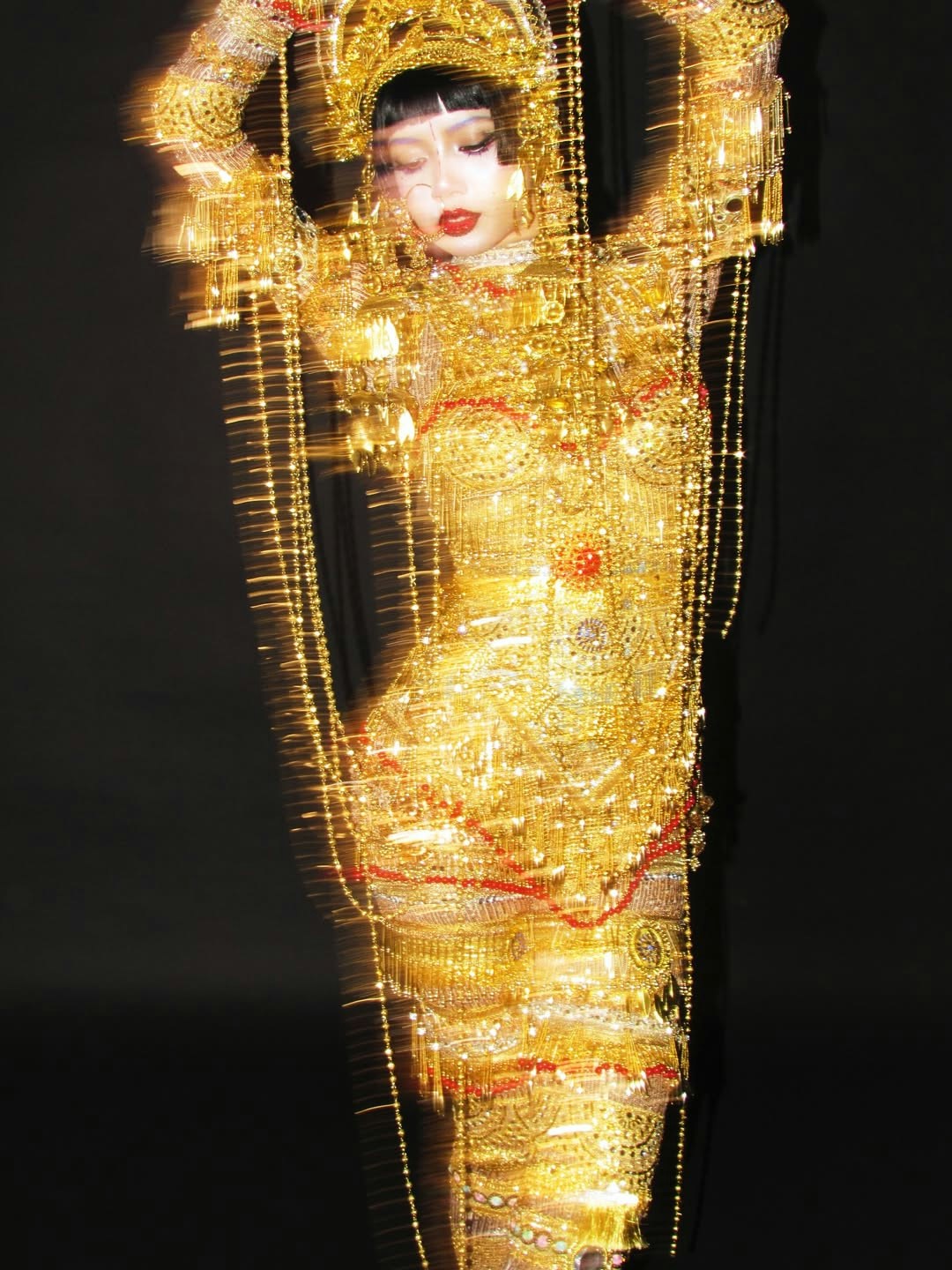 LISA@BLACKPINK在Instagram分享了一段短片,片中她穿上一襲黃金衣,衣服上掛滿金光燦爛的掛飾,頭戴皇冠,穿上了鼻環,有如女神一般。其實,這個造型就正是Netflix《Love, Death & Robots》(《愛·死·機械人》)第三季第九集「吉巴羅」(Jibaro)中出現的女妖。