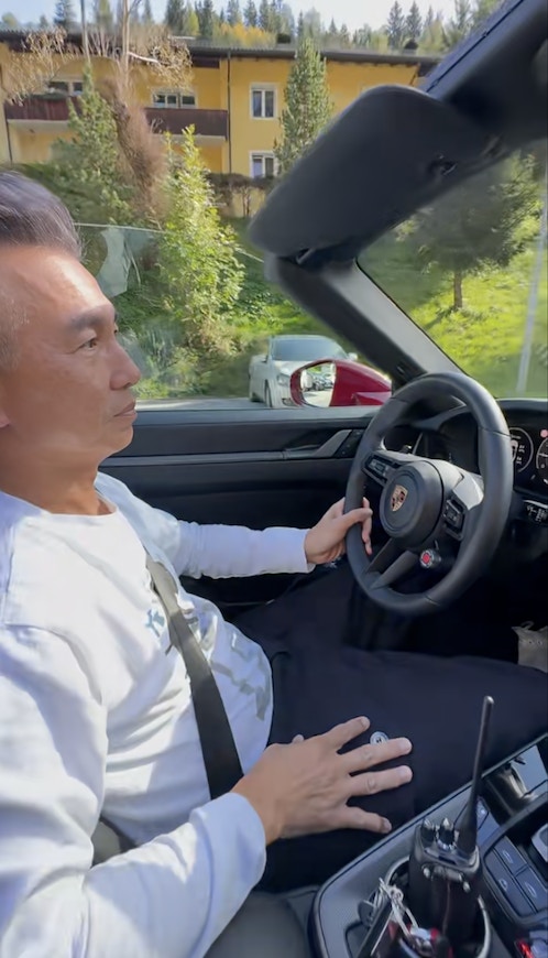 滕麗名日前於社交網分享富貴生活。片段中朱建崑駕保時捷,帶滕麗名遊走歐洲不同城市。滕麗名坐在開篷保時捷上,享受藍天白雲和優美景色,她甜笑地在倒後鏡自拍,享受闊太生活。滕麗名發文:「你們享受自駕遊的樂趣嗎?#德國 #奧地利 #意大利」。