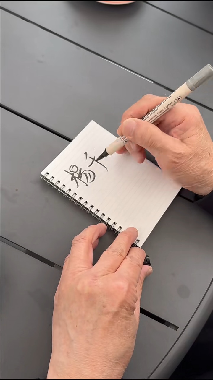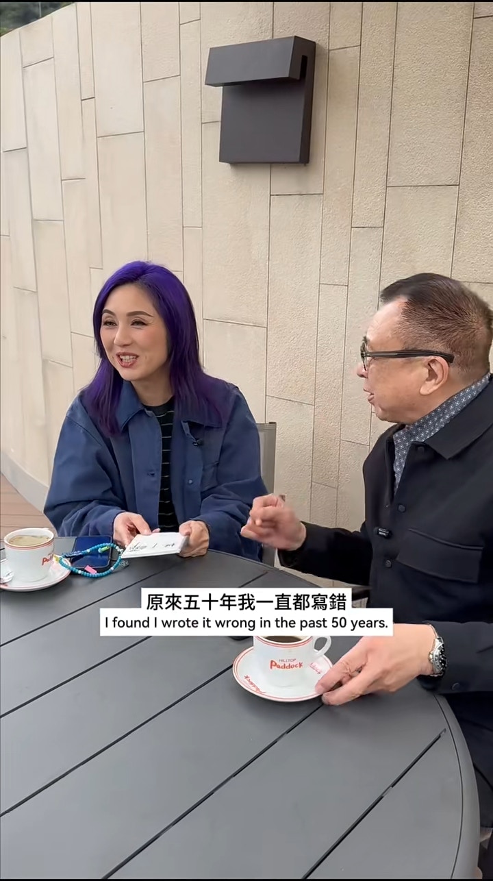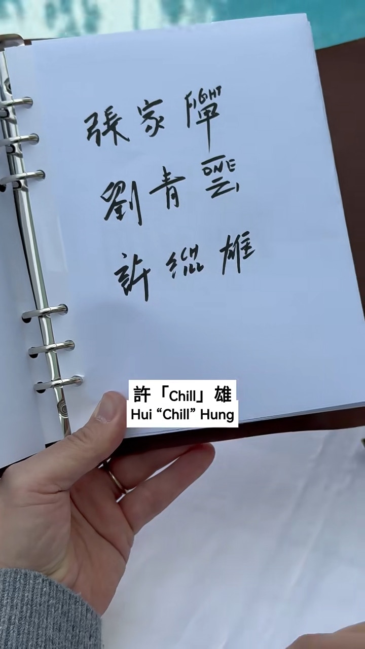 許紹雄寫張家輝同劉青雲個名。(影片截圖)