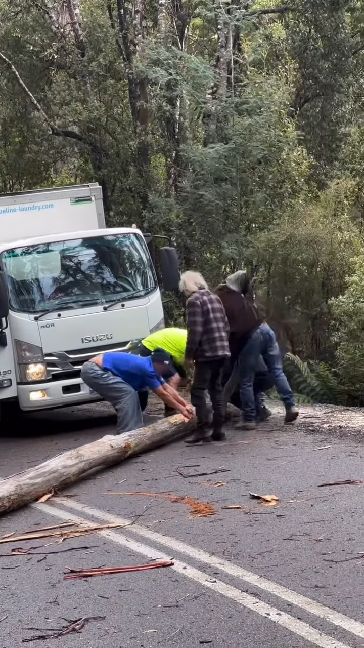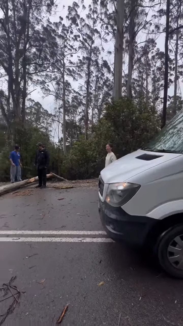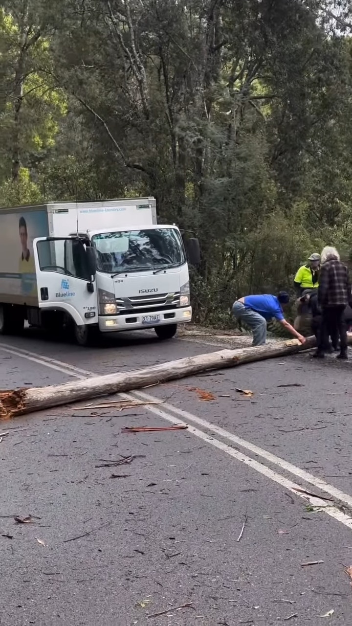 梁芷珮上載了一段短片,並寫道:「相信架車揸快小小,呢舊木就會跌咗喺我哋到😱諗返都有小小危險😅Thanks god我哋今日唔趕🙏🏻」片中所見,山路上有一棵倒塌的大樹,攔截了兩條行車線,梁芷珮老公與幾位外國人一起嘗試移開大樹,最後要合6人之力才成功將大樹移到一旁:「等咗十幾分鐘先等夠男人一齊搬走舊木,本地伯伯超勁,一落車已經識得喺條木嘅尾嗰度用槓桿原理攞嚿小木撬起舊大木,如果唔係佢我哋都唔知等幾耐先至離開到呢度🤩各位10月玩Tasmania自駕遊嘅朋友要小心喇!呢度係會好大風好大雨㗎!」