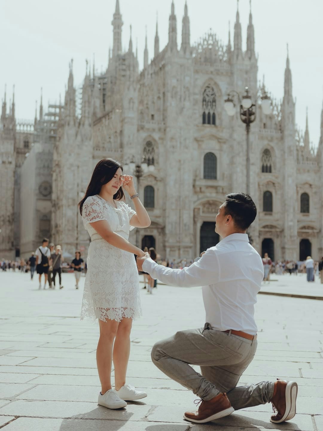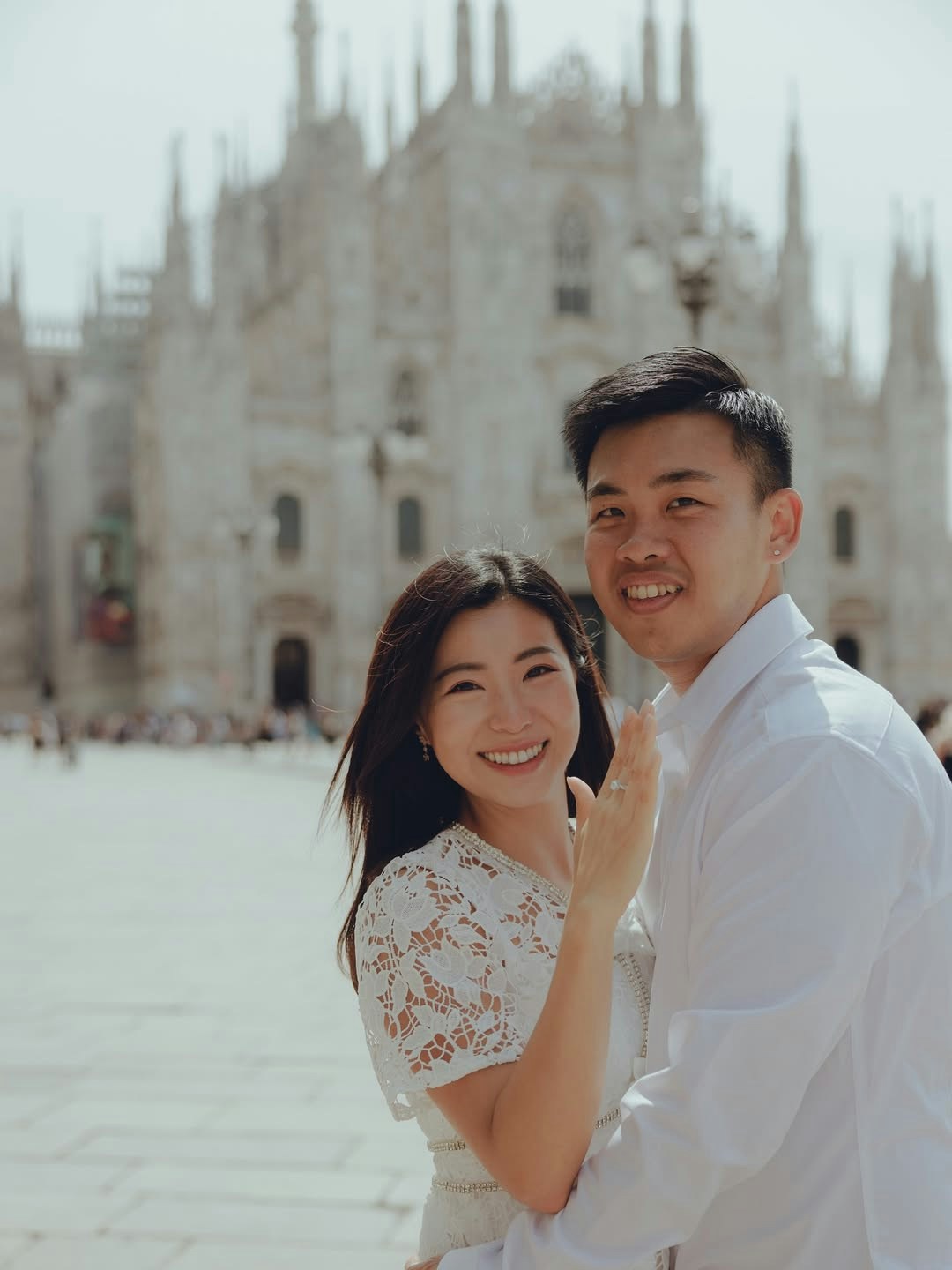 米蘭大教堂前跪地求婚,袁沅玉感動到喊。(IG@yuenyuenyukyuki)