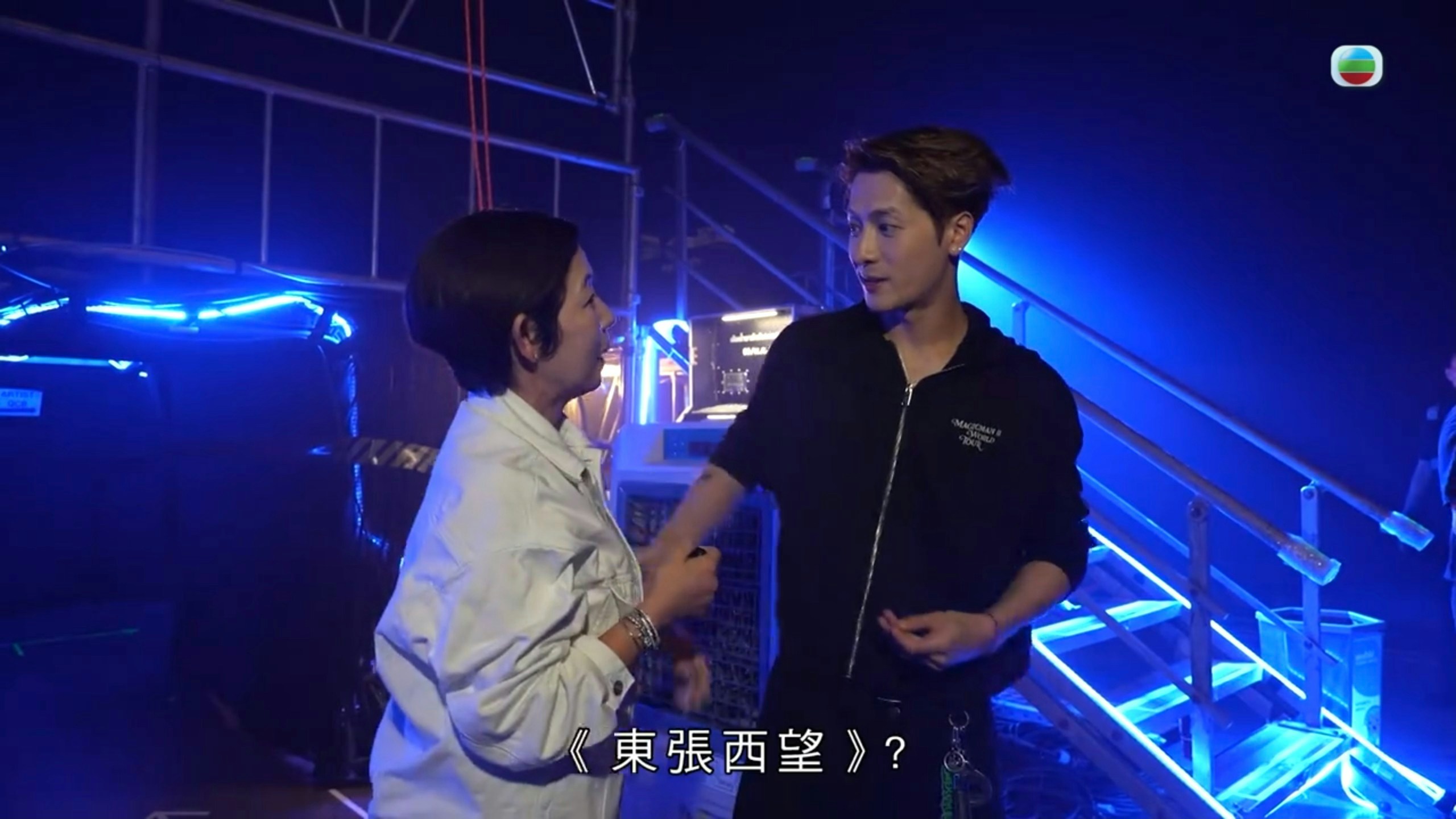 在昨晚(10月6日)播出的《東張西望》節目中,以「生於香港,衝出國際的頂流歌手」來形容王嘉爾,並播放了其曼谷站演唱會的精彩花絮。王嘉爾除了在台上展示帥氣和感性一面外,台下亦不失其可愛搞笑的本色。全程以廣東話受訪的他,自言是《東張西望》的粉絲,之後又拿著《娛樂新聞台》的咪牌再次示愛:「我好鍾意《東張西望》」。工作人員「提醒」說:「你拆咗佢(《娛樂新聞台》咪牌)先鍾意《東張西望》!」王嘉爾尷尬伸脷說:「唔好意思啊!」,之後再補拍多次:「我係好鍾意《東張西望》。」,非常可愛。