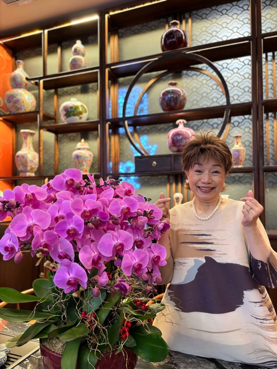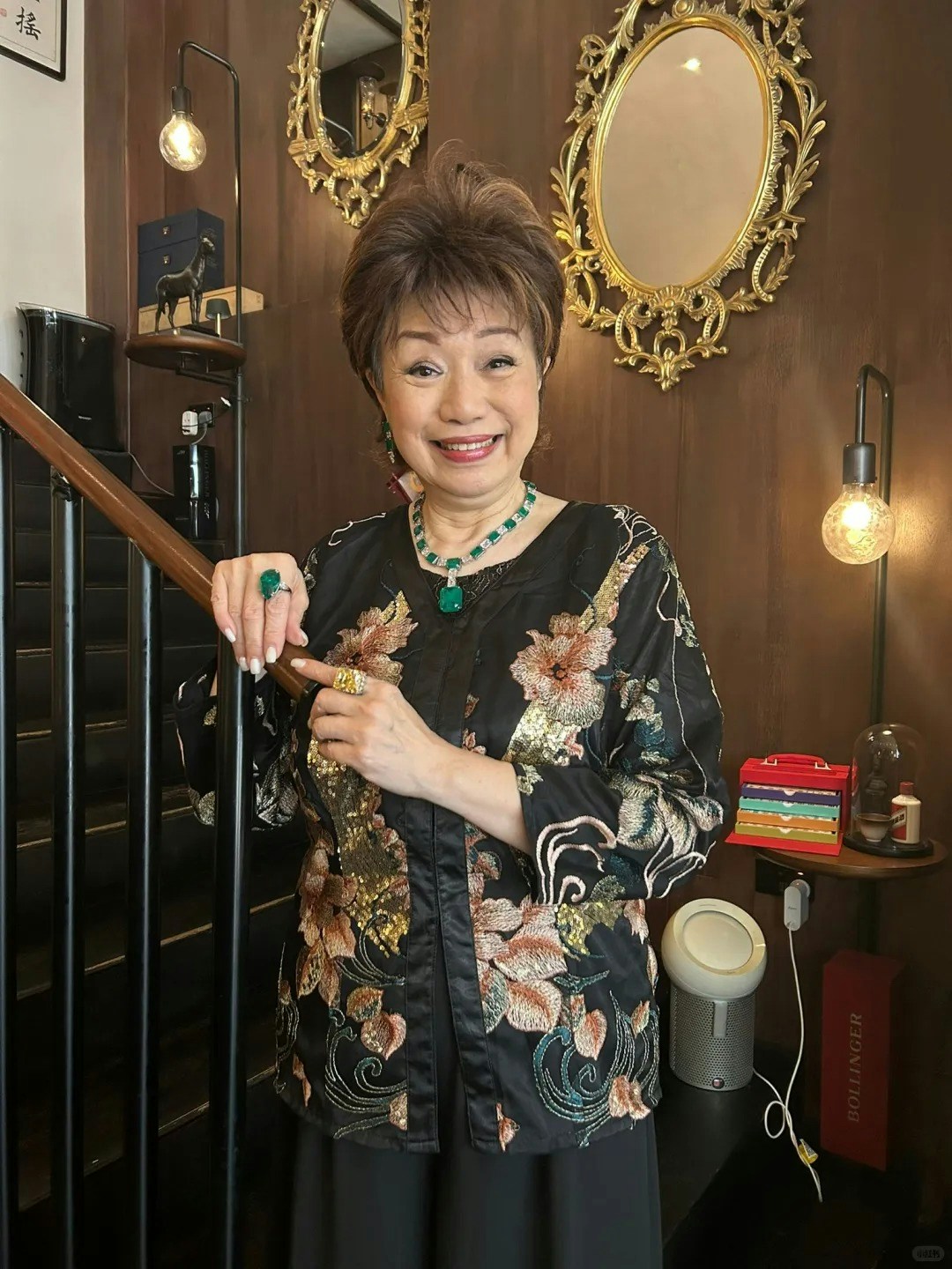 照片中,程可為身穿格仔外套,剪了一頭短髮,前額特意留了一束銀髮,想做了挑染效果,並佩戴珍珠耳環和翡翠頸鏈,整體造型高貴優雅。在兩位視帝兒子的包圍下,她露出燦爛笑容,顯得非常開心。網友紛紛大讚程可為狀態極佳,也有網友認為她的妝容與盧宛茵有幾分相似,但整體而言,新造型既高貴又充滿新鮮感。