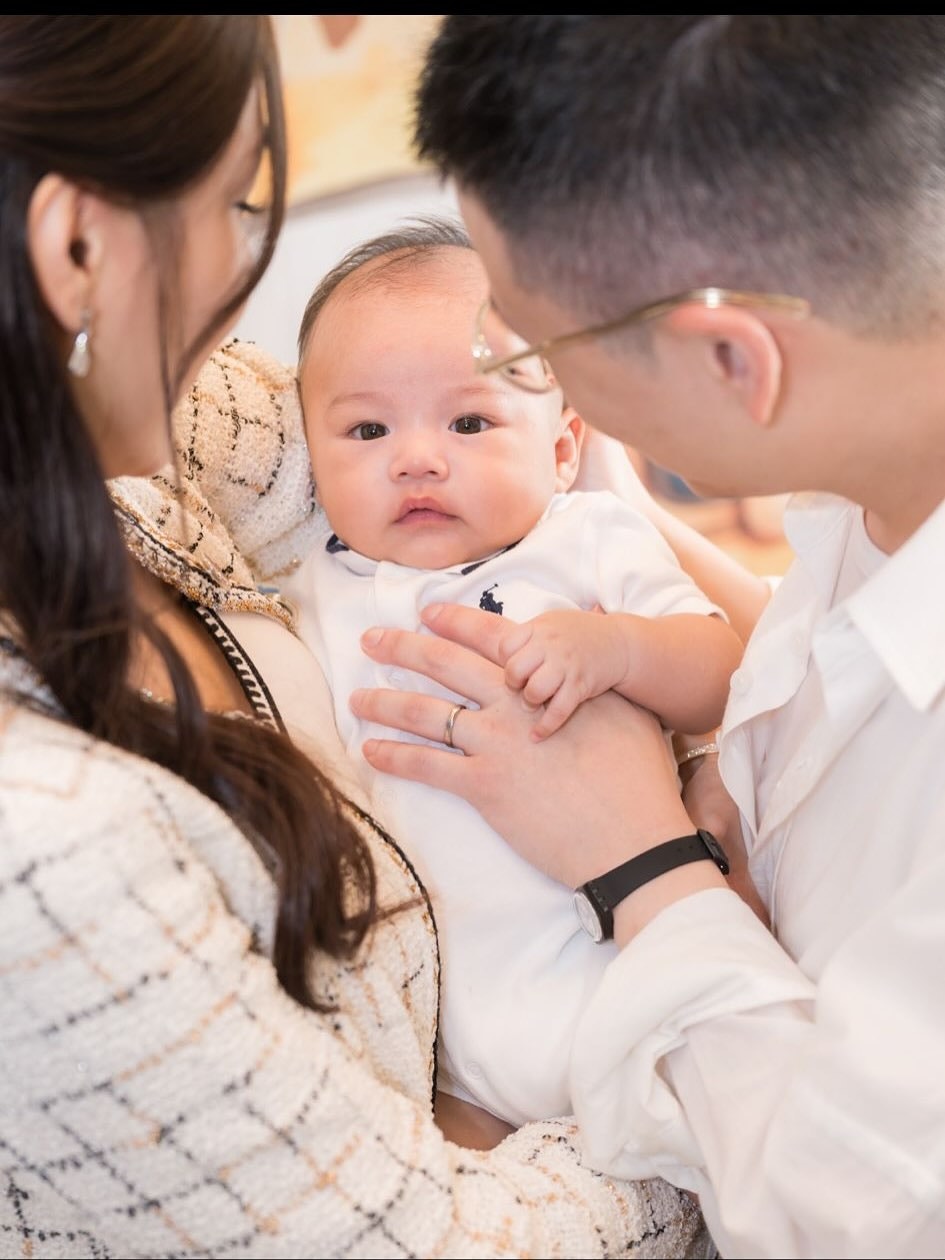 轉眼BB已出世100日,日前陳詩欣為兒子舉行百日宴,一班好姊妹蔡嘉欣、余香凝、鍾晴等現身,而同期懷孕的何依婷,因為有工作未有到場,但竟派出只有6個月大的寶貝女出席百日宴,並交由契媽陳詩欣照顧。陳詩欣在IG分享多張一家三口的溫馨合照,見陳詩欣穿上CHANEL白色套裝裙,配襯閃鑽耳環和頸鏈,與肥嘟嘟嘅BB同埋咁搶鏡!