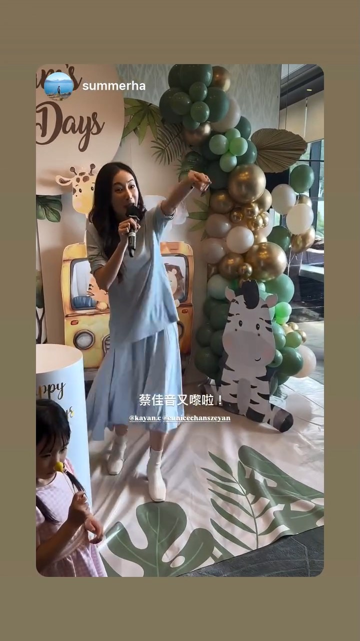 另外,蔡嘉欣(KAYAN)當日心情勁興奮做咪霸,多度拎住支咪唱歌,又拉小朋友跳舞。陳詩欣轉發影片見到「蔡佳音又嚟」蔡嘉欣一個人在餐桌上唱歌,陳詩欣表示:「真係唔簡單啊!KAYAN話害怕別人唔知道活動已經完結!決定清唱《我的驕傲》,唱完之後真係走咗一半」。陳詩欣一家返到屋企後,便偷影老公熟睡相:「陳生返到屋企1秒暈低,搞克百日宴之後我們的狀態,好攰呀!仲有下一轉百日宴就是同屋企人。」